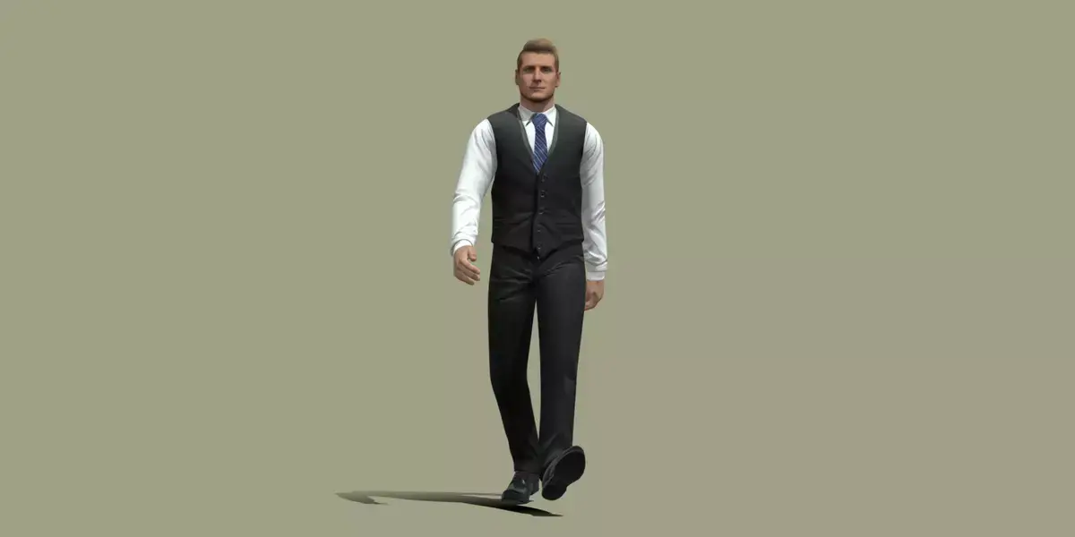 Animated Business man walking 3D model with 35 frames1024 x1024 texture mapsModel’s created by 3dsmax, export to FBX file.