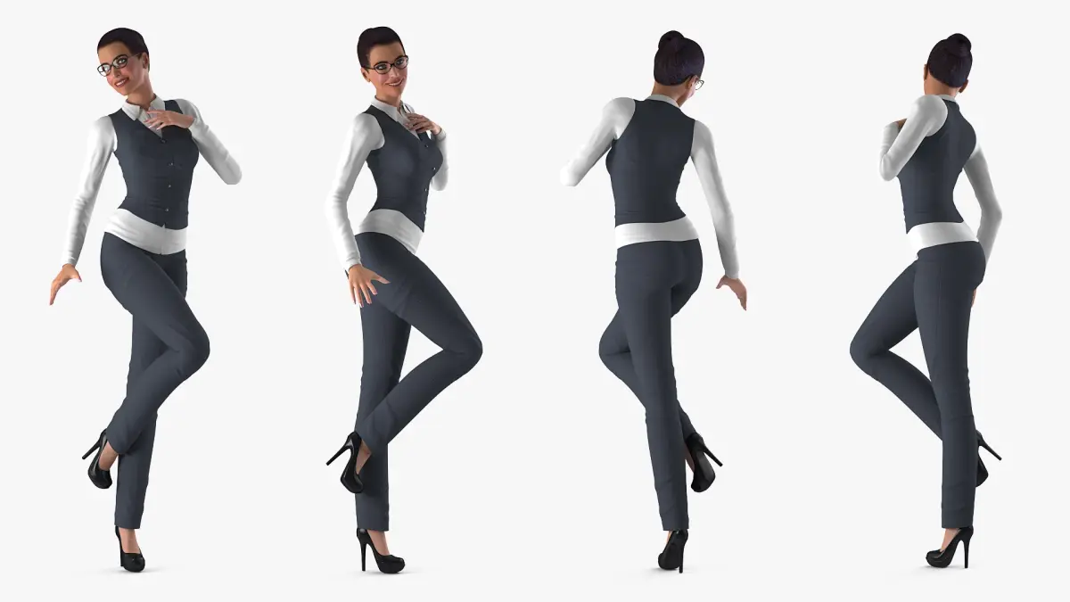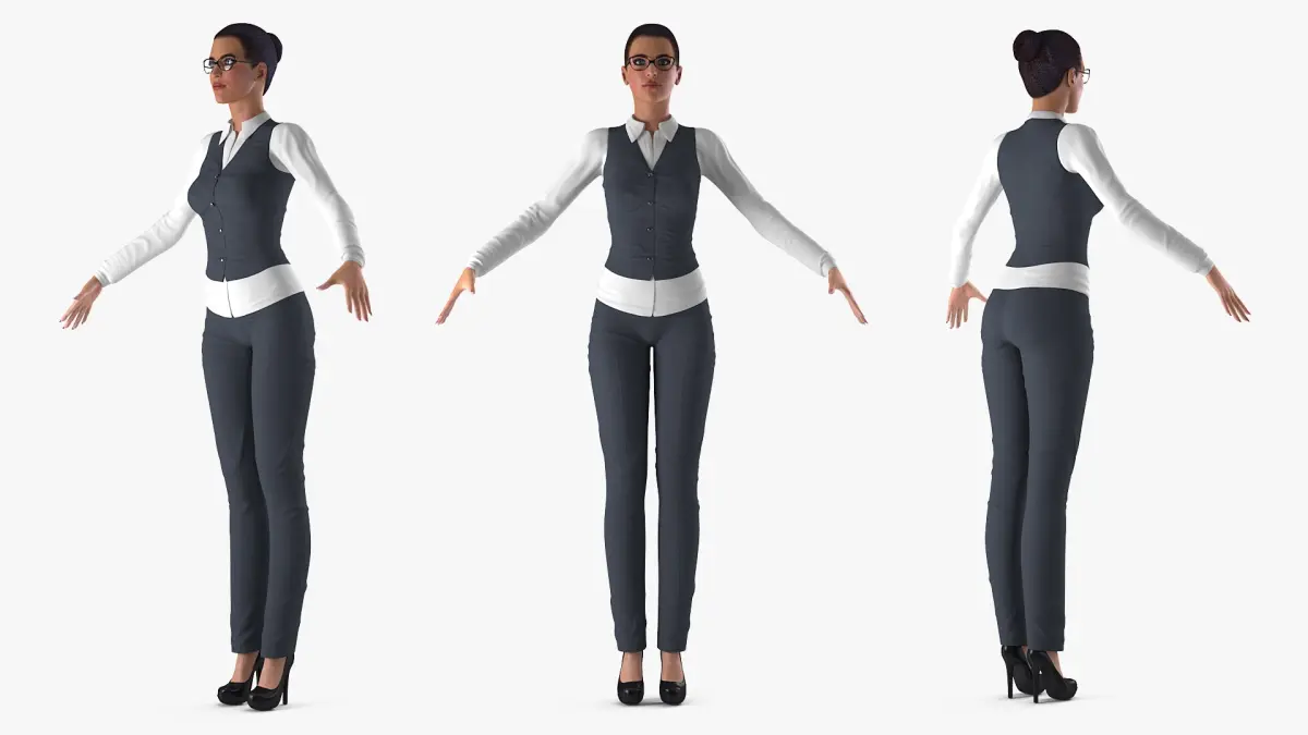 Business Style Woman 3d model fully rigged with bones and skin system in Cinema 4D R17.