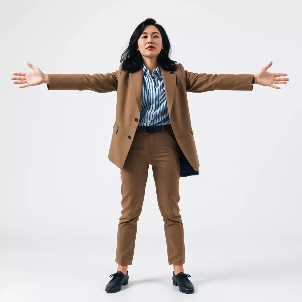 This detailed businesswoman model in a brown suit is perfect for professional and corporate visualizations, including office environments and virtual presentations. Each model has 3 levels of detail: low-poly (1000 triangles for mobile), middle-poly (10,000 triangles for environment), and high-poly (100,000 triangles), which allows for the use of this model in production rendering (such as 3ds Max, Maya, Cinema4D, Blender, Vray/Corona/Cycles and all others), game engines (Unity and Unreal compatible), and interactive presentations, providing a choice of detail based on the LOD System principle. The model's textures are PBR, Diffuse, NormalMap, and reflection/roughness/metallic, which are suitable for any modern rendering engine. All models accurately unwrapped and have no overlapping UV. All textures are 4096*4096 in size. The first image is the reference used for creating the 3D model. It is important to carefully evaluate the quality of the model by examining the preview images that display the topology and polygonal mesh. These previews (WIRE and WEB 3D Preview) clearly demonstrate how accurately the model matches the original reference and how well the geometry has been executed. Please like and leave a comment if you enjoyed the model.
