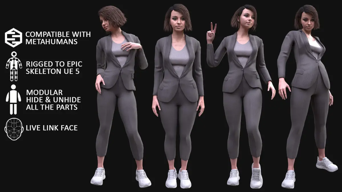 (New version - UE 5.1-5.2) 100% compatible with female Metahuman (Normal/Average body - MH Skeleton)This is not a Metahuman's body and face. This is our creation.But this body has exactly the same shape as the Metahuman's body (Normal/Average)So you can put this Outfit on your Female Metahuman (Normal/Average)
