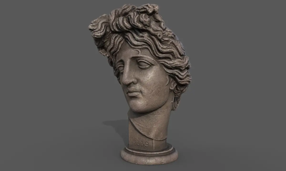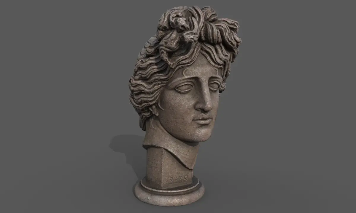 low poly sculpture model of Apollo's head god of poetry, music, and dance for use in Architectural visualization, AR, and game engines