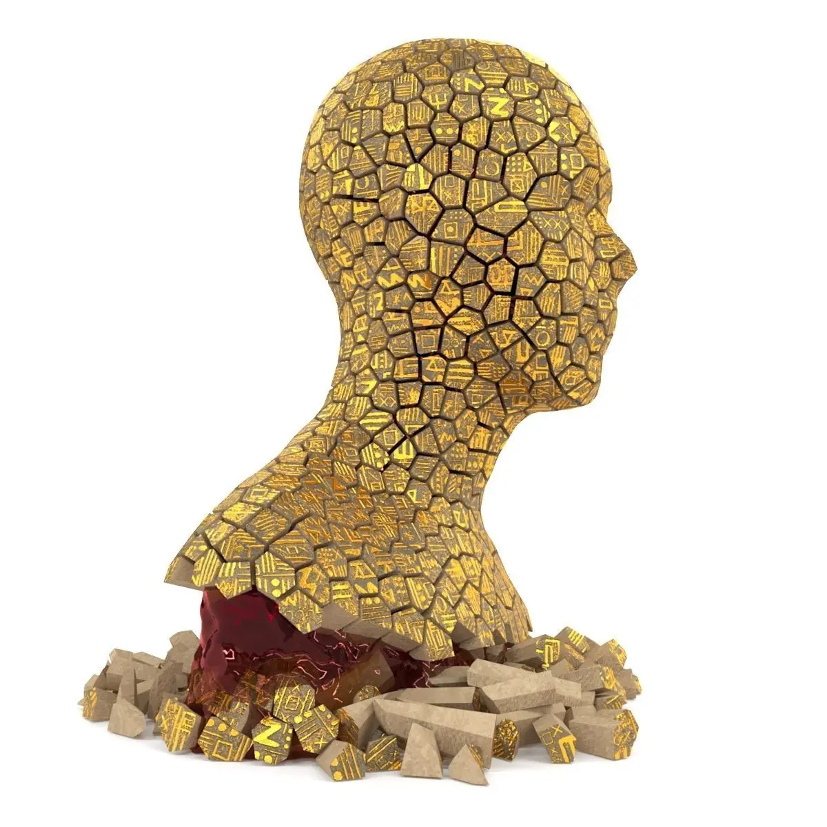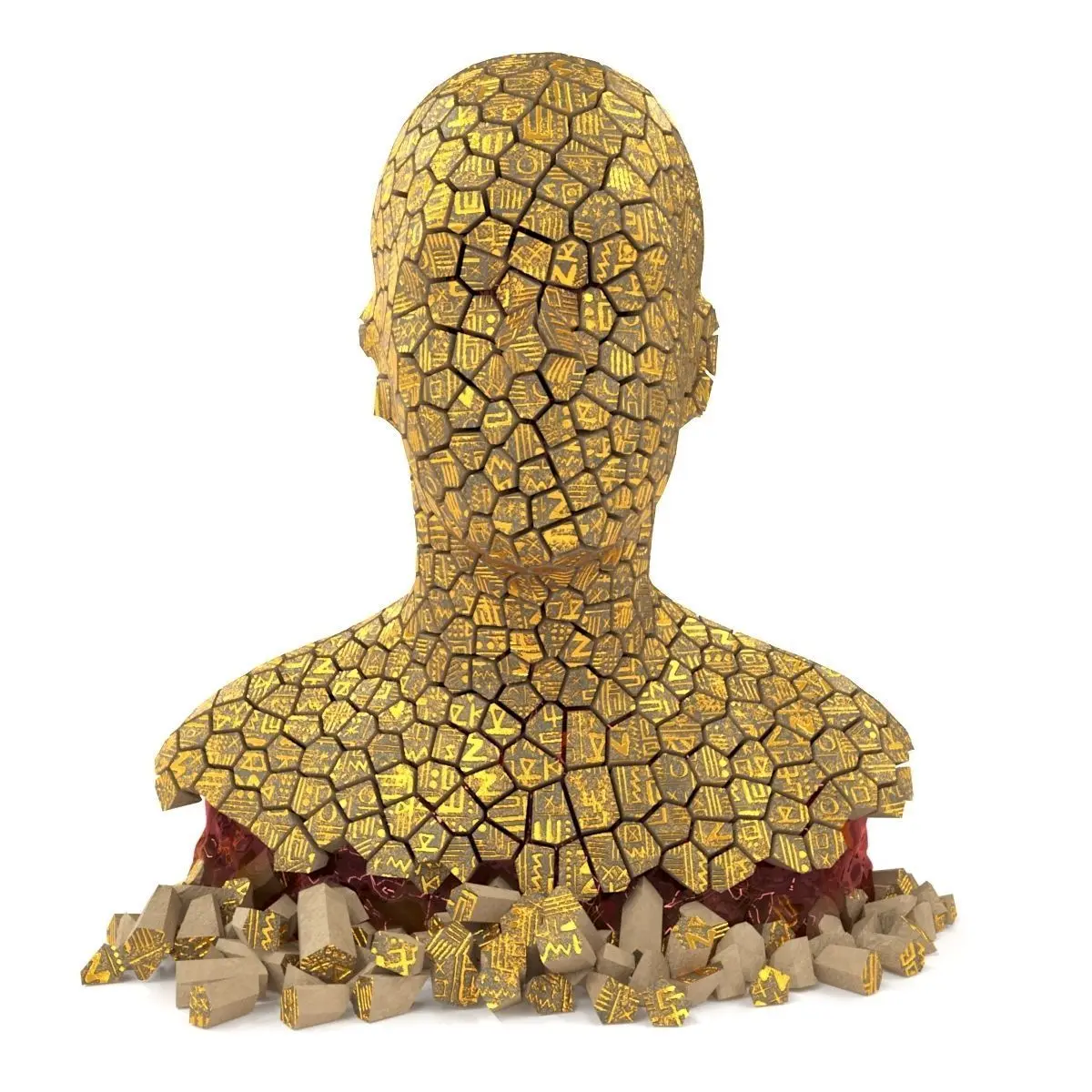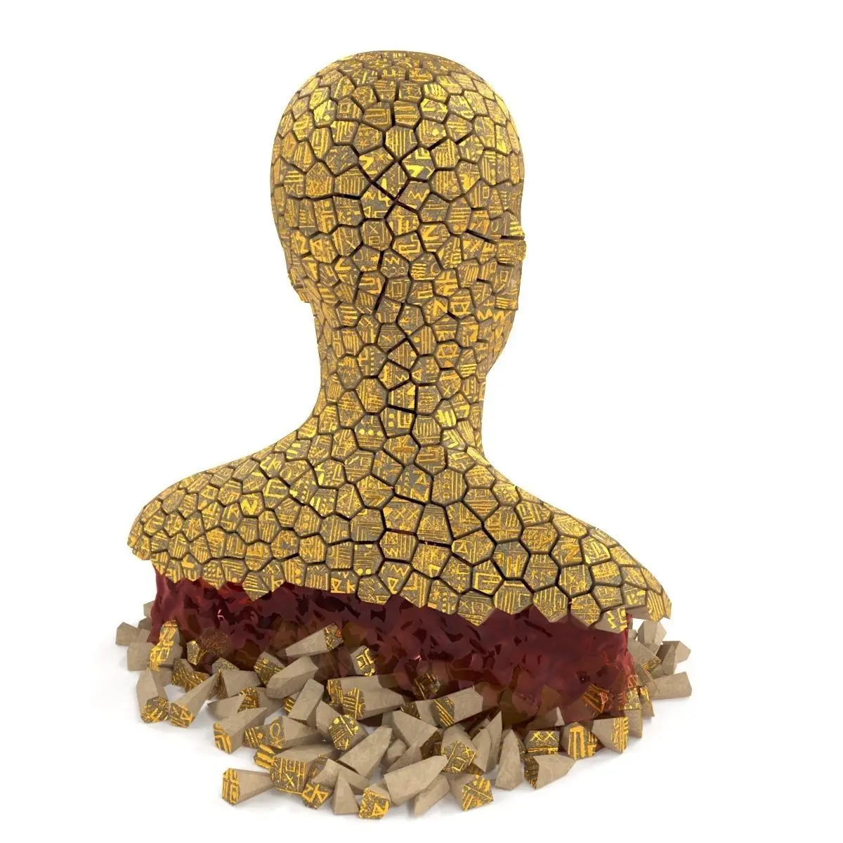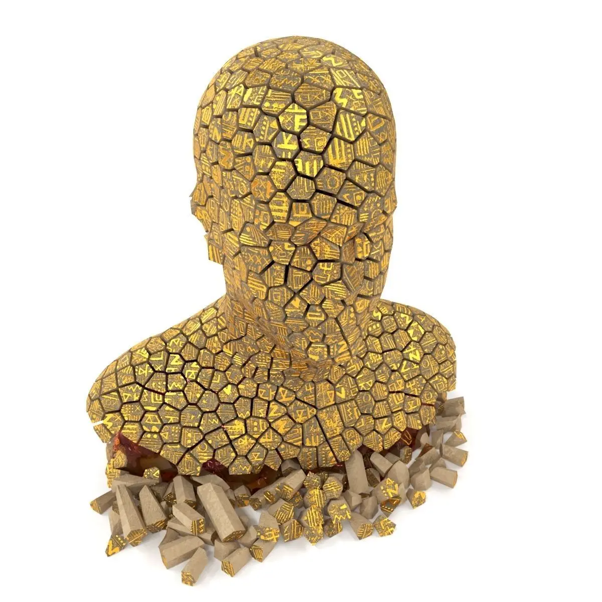 Bust of fragments with hieroglyphics