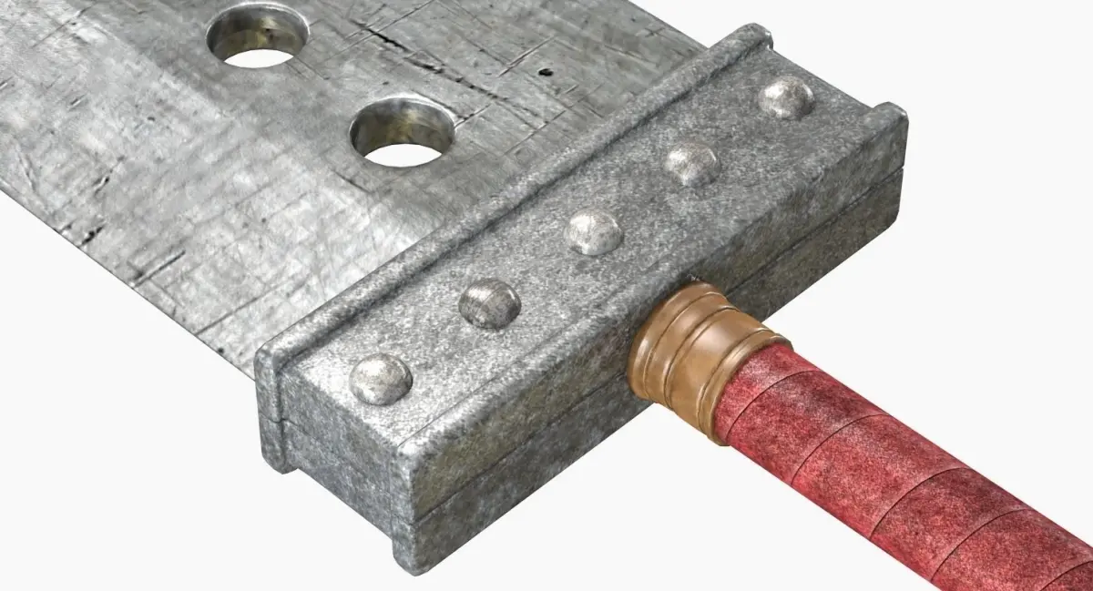 This is a model of a Buster Sword is classified as an enormous broadsword. From tip to handle, it is approximately five to six feet long, with a single-edged large blade approximately one foot wide.