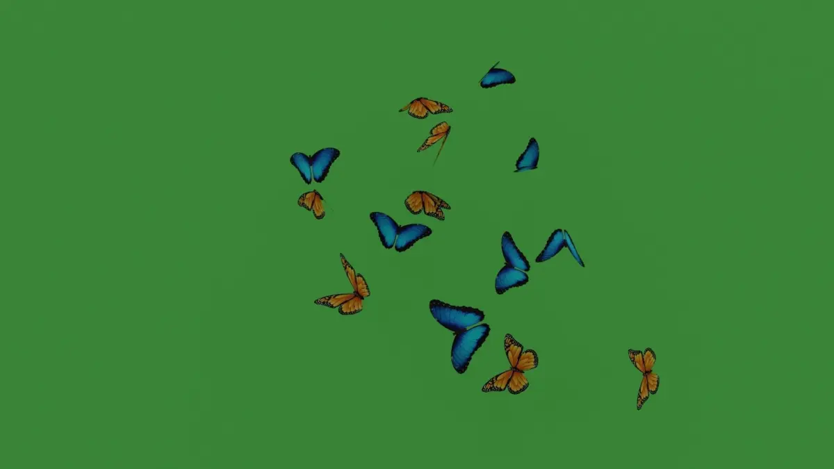 3D model of cyclic animation of butterflies. high quality textures are used. animation for 250 frames. each butterfly moves on its own path. objects do not intersect while moving. perfect for any game engines (PBR textures) and not only.
