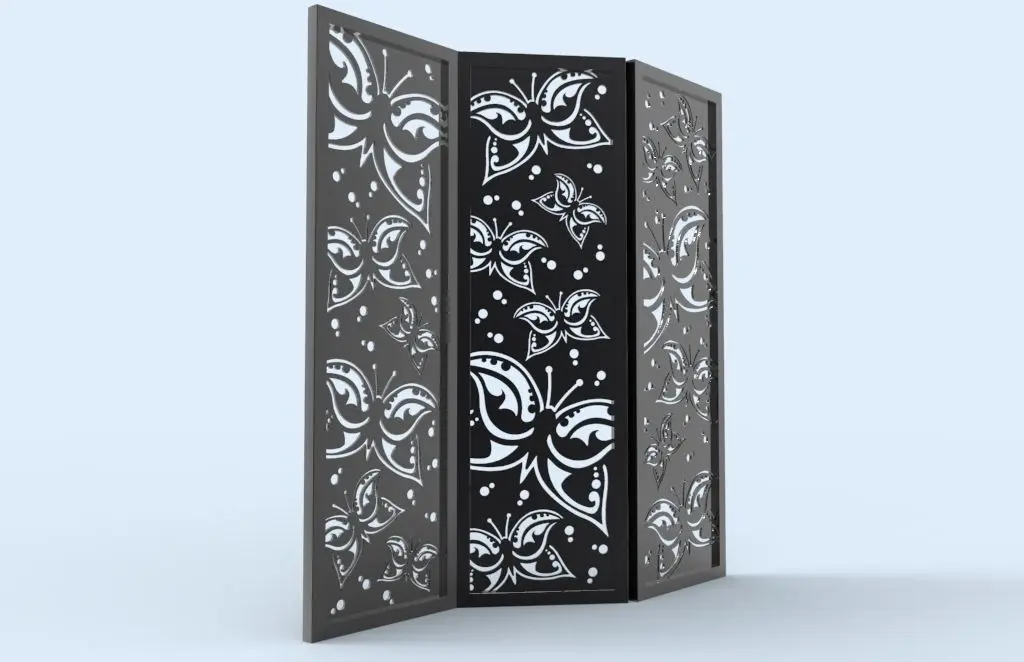 Perforated panels suitable to for separator screen, divider. Butterfly pattern.