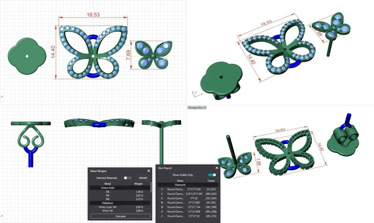 Earrings studs in the form of butterflies