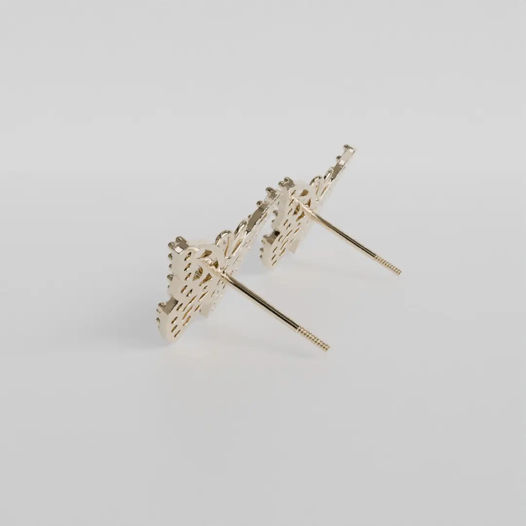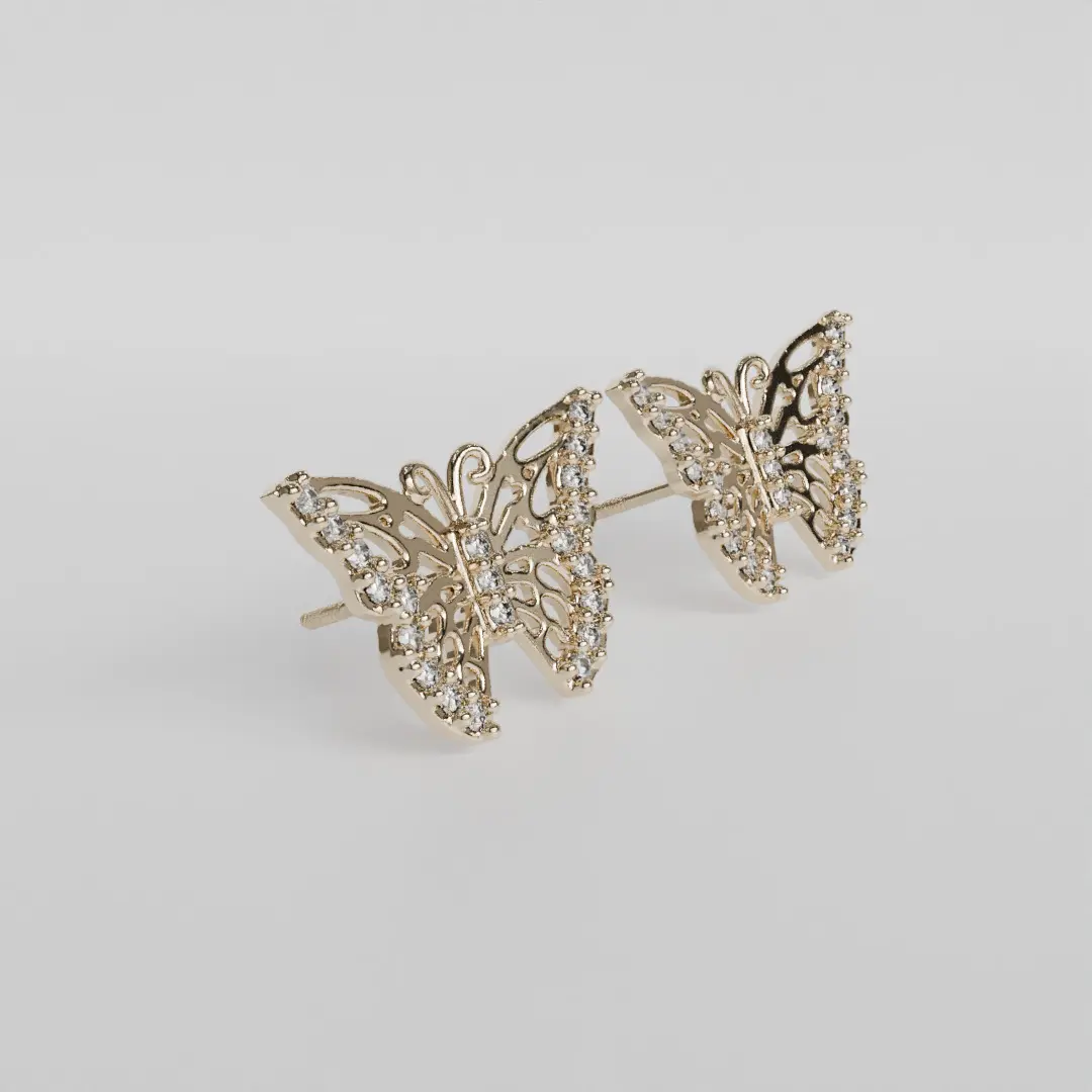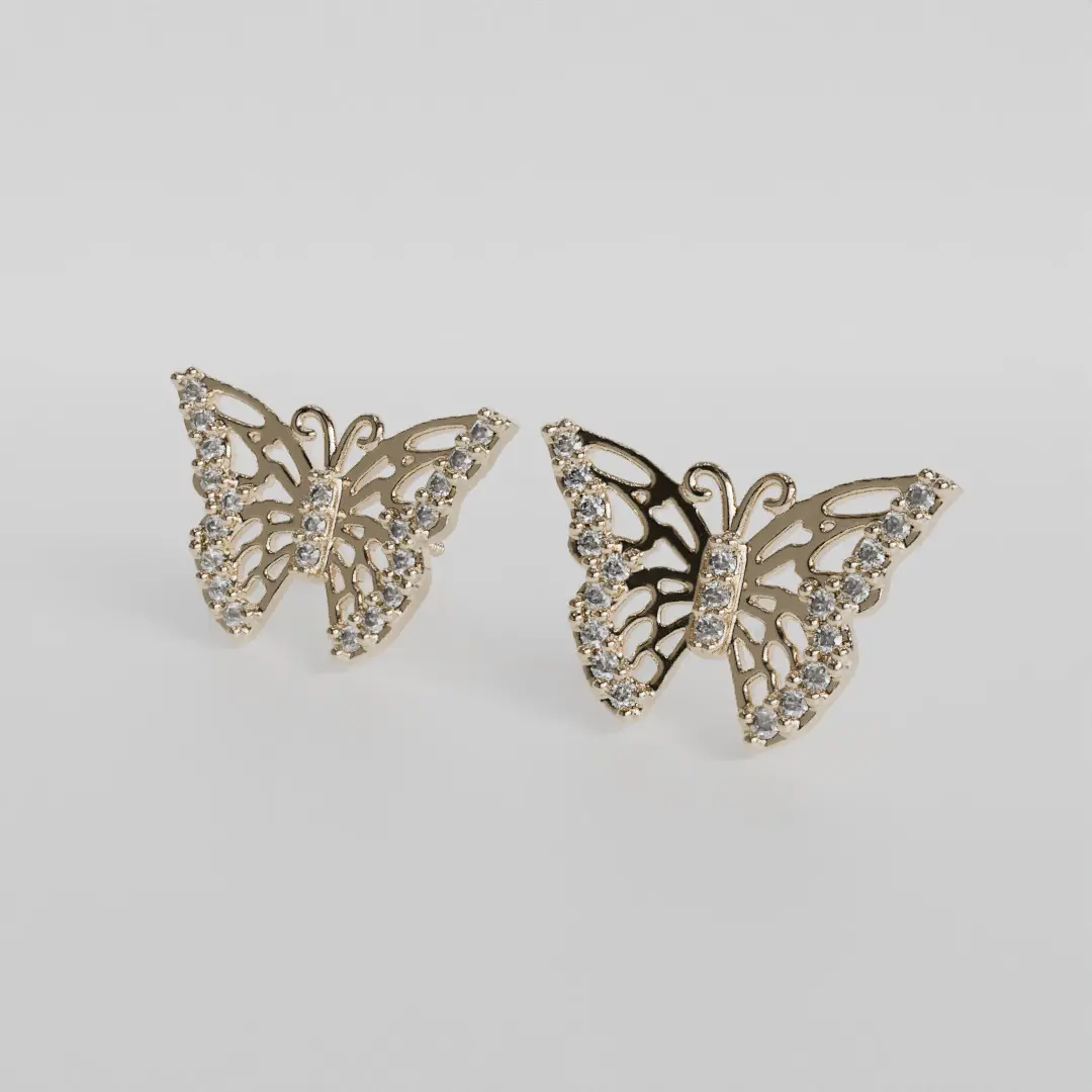Butterfly earringswith 1 mm diameter diamond inlays on the wingsThree 1 mm inlays on the body of the wings10.90 mm high by 16.30 mm wide