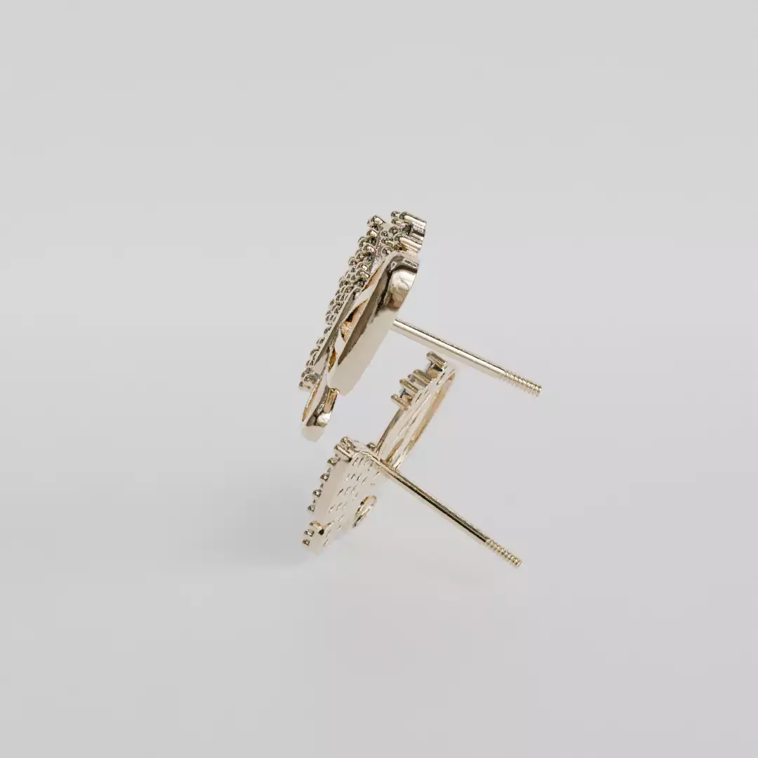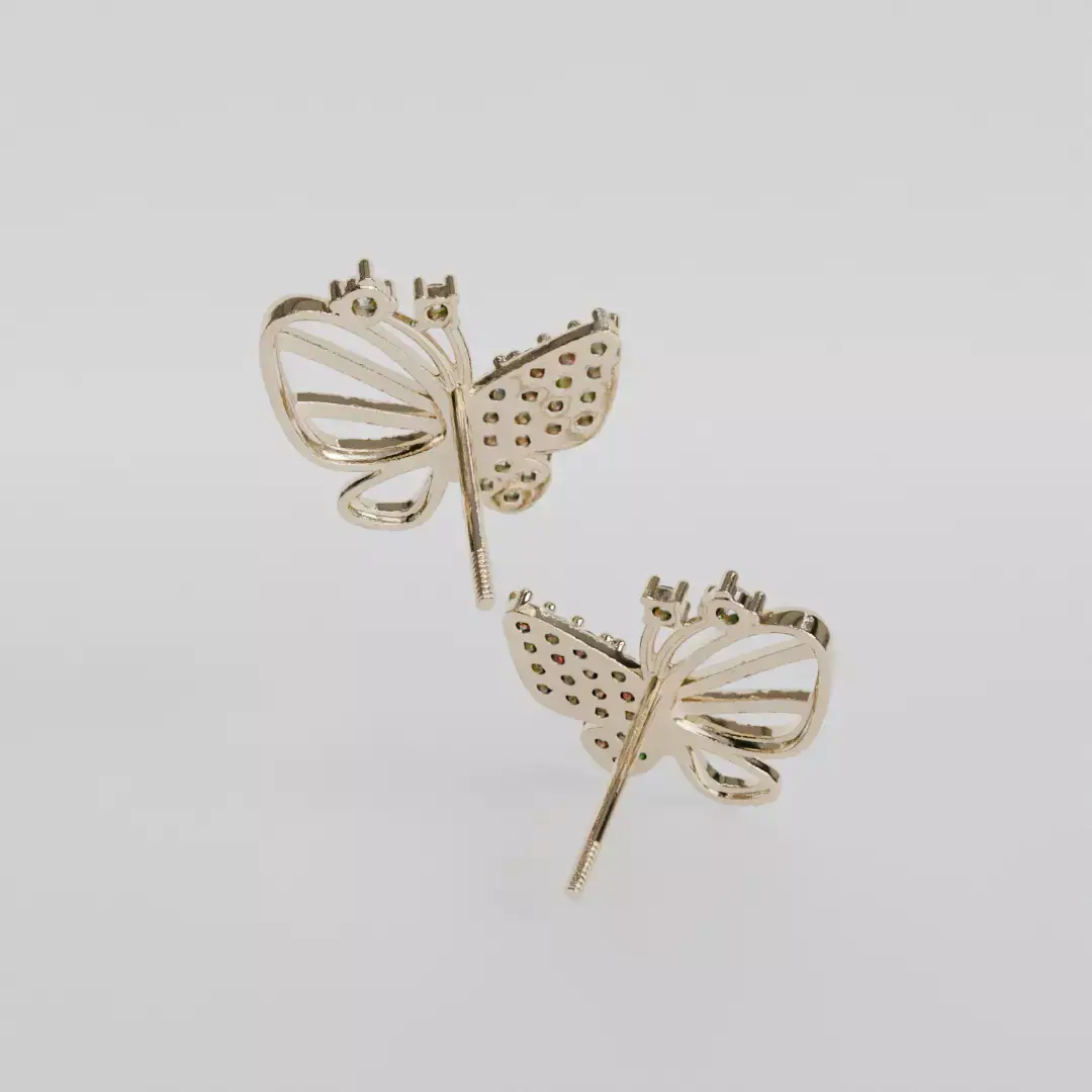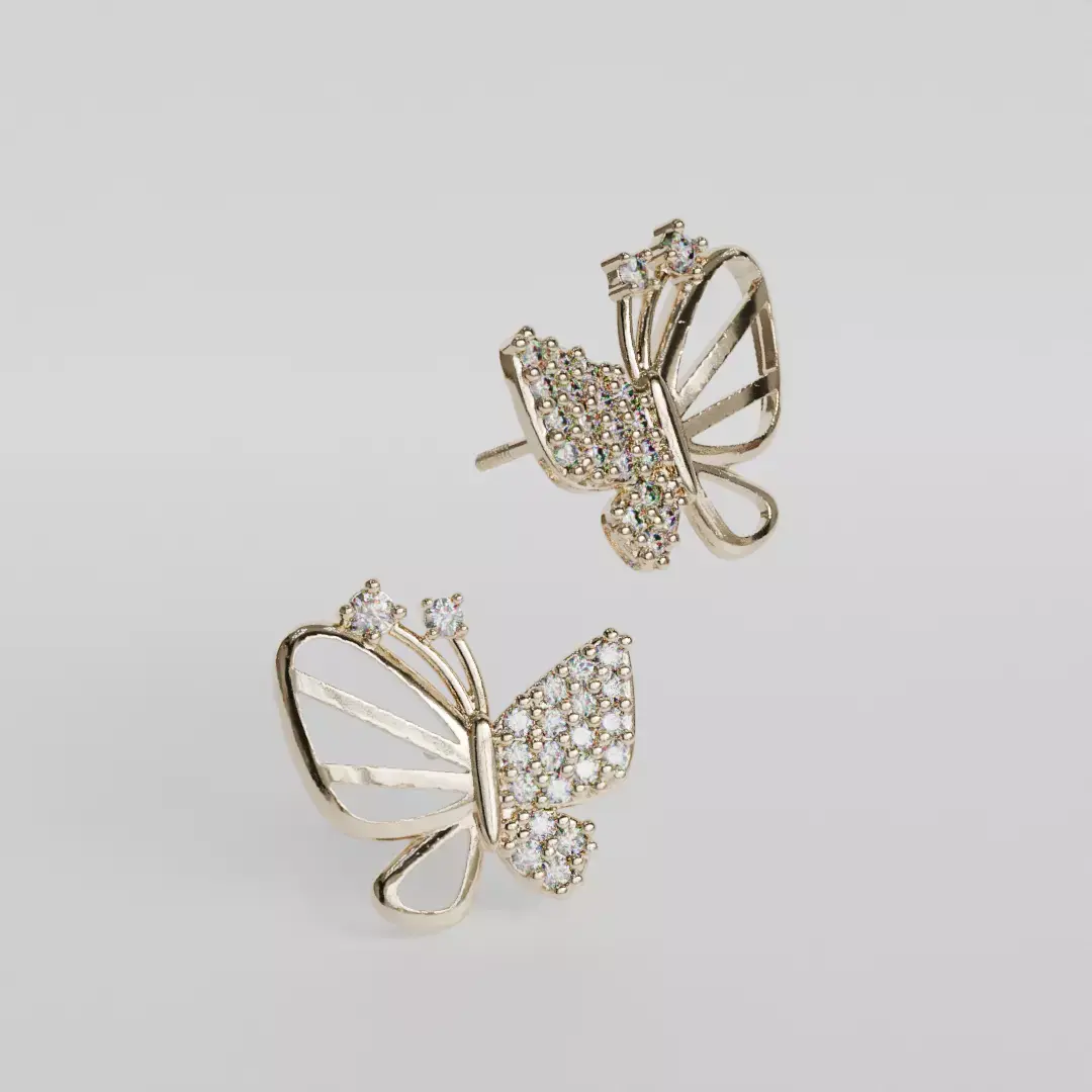 Butterfly earrings12.00 x 12.60 mmHalf wings inlaid with zircon or diamonds19 pieces of 1 mm1 piece of 1.25 mm1 piece of 1.5 mm