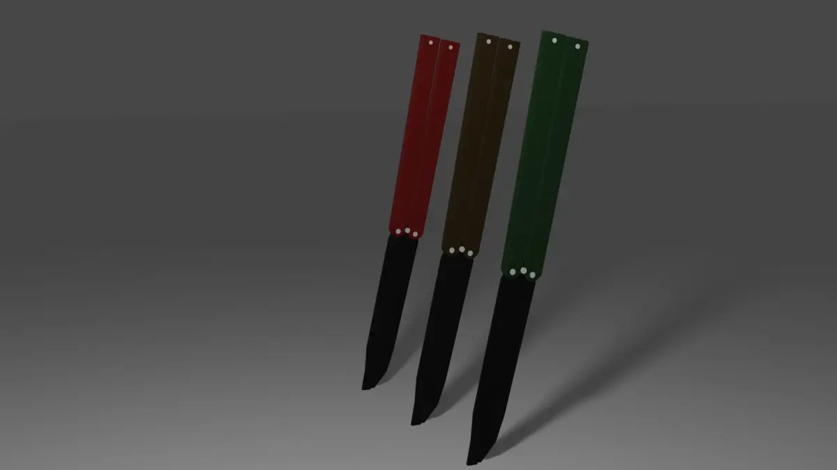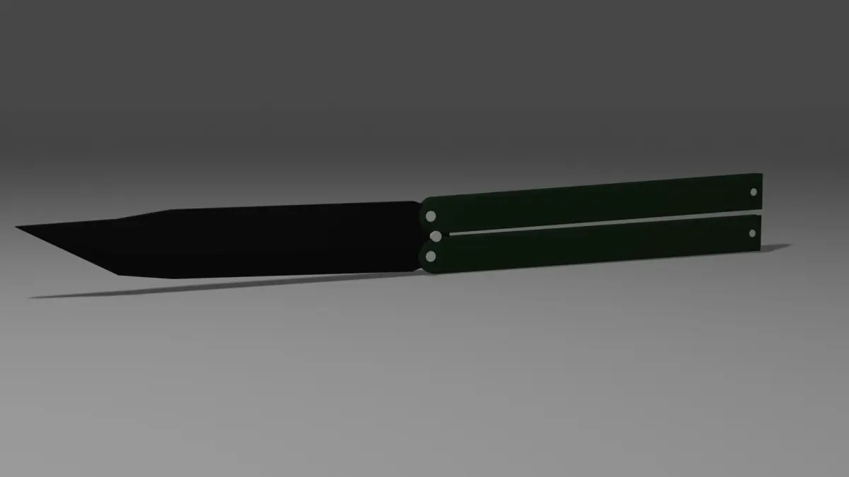 I made a butterfly knife based on the one I have. Initially I was going to add a rig, but it did not work out. However, instead, I moved the origins to convenient places for animation.