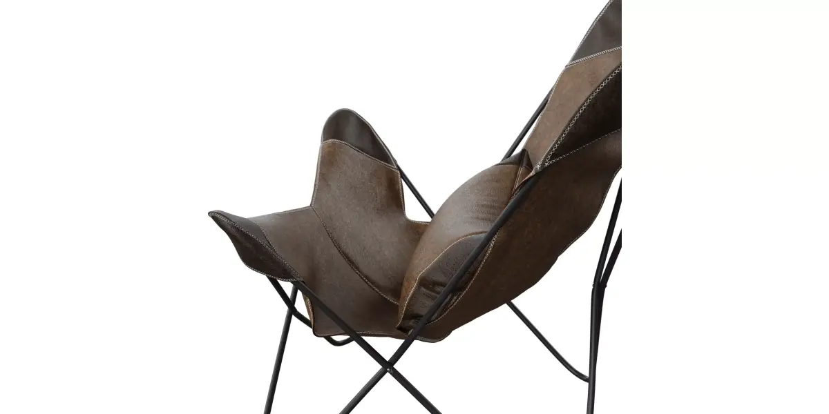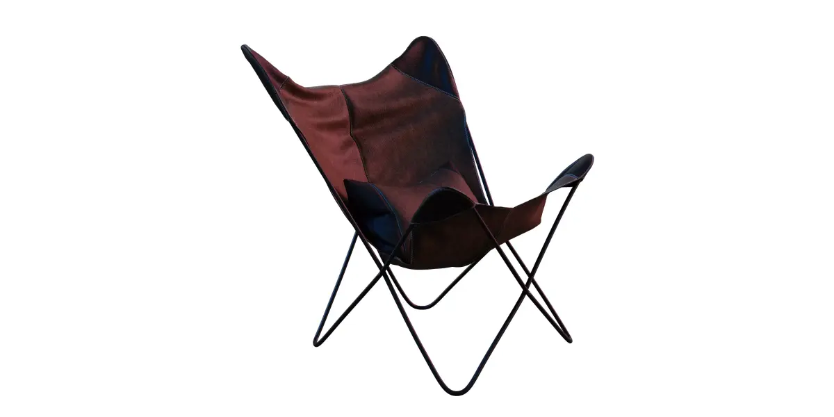 This 3D model has a classic butterfly chair design with a leather finish. The 3D model of a lounge chair features a sturdy metal frame and leather seating. It has a vintage yet stylish look suitable for various interiors. There is detailed stitching and texturing on the leather.Key Features:Type: This is a blender 3D model of a lounge chair.