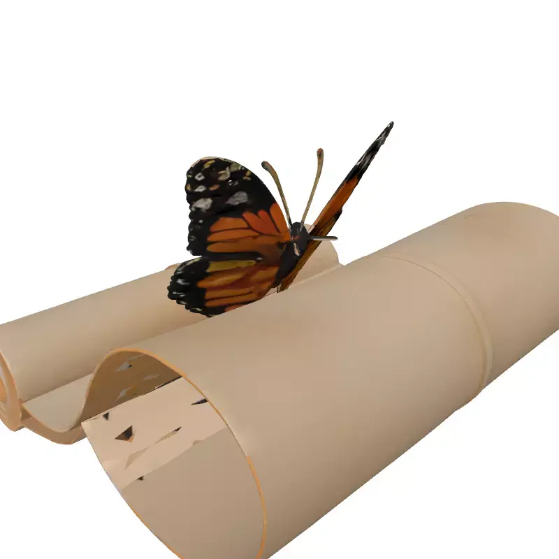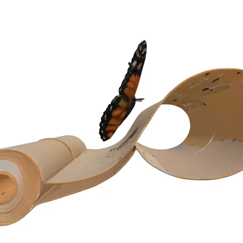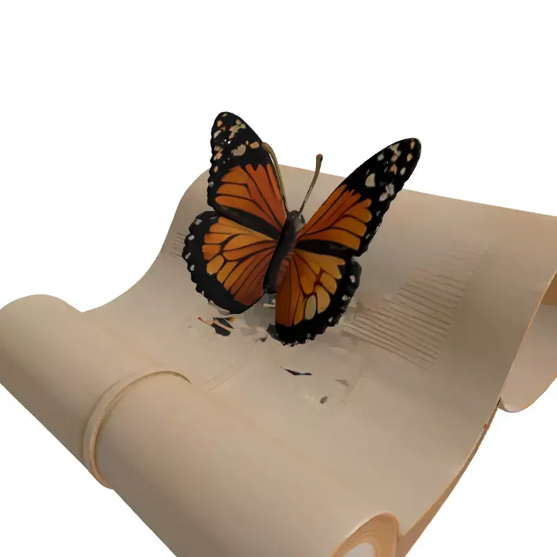 This highly detailed 3D model features a vibrant Monarch butterfly elegantly perched upon an ancient, unfurled parchment scroll. The scroll is meticulously textured with intricate, pseudo-historical text, suggesting a relic of forgotten knowledge or a mysterious message. This asset is perfect for enriching a wide array of digital projects, including historical reconstructions, fantasy game environments, captivating architectural visualizations, or educational augmented reality (AR) and virtual reality (VR) applications. It is also well-suited for high-quality renders in digital art, film, and animation. The model boasts clean topology, is fully UV unwrapped, and comes with high-resolution PBR textures to ensure a realistic appearance under various lighting conditions. While optimized for static renderings and cinematics, its structure allows for potential integration into real-time engines with appropriate optimizations like LODs. Supported file formats include GLB, OBJ, FBX, USD, DAE, ABC, STL, and PLY, ensuring broad compatibility across different 3D software and engines. Ideal for adding a touch of natural beauty and historical intrigue to any scene, this model offers versatility and quality. Whether for a close-up hero shot or a background detail, the intricate craftsmanship ensures visual fidelity. Enhance your virtual worlds with this exquisitely rendered natural element, combining flora with an ancient artifact. Perfect for interactive experiences or high-fidelity cinematic productions, it is a ready-to-use asset.