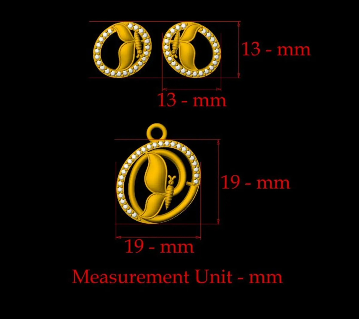 Butterfly pendant jewelry gold 3d print model_ File format: STL , OBJ , 3DMPendant Magerit butterfly All sizes of stones and products are displayed on the images. The file cointains OBJ, STL and 3Ds models.For any additional information or request like editing or if you have trouble downloading contact me. I'll be glad to help as soon as i can. The model is made in full compliance with the technical requirements for production.