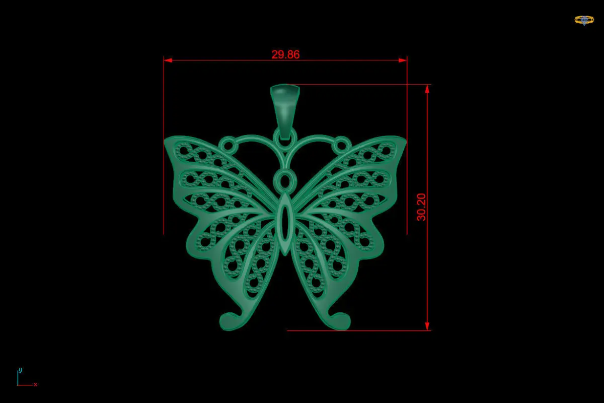 Butterfly pendant 3D print model. This is a very good quality printable Straight Business pendant. If you want you can edit this model as u wish.Weight - Silver .925 - 5.59g.