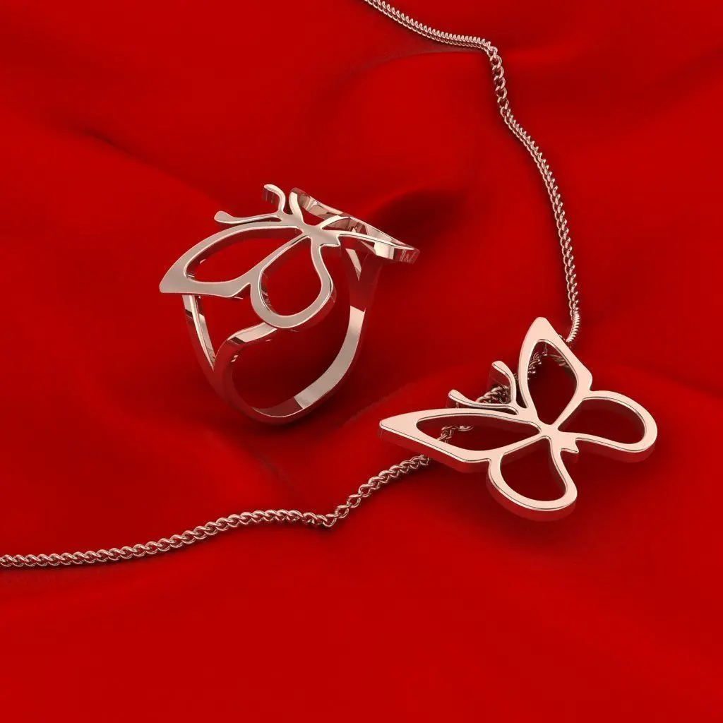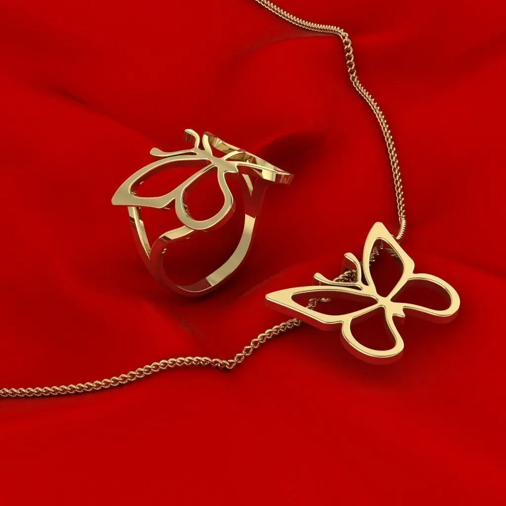Beautiful butterfly ring and pendant, very lightweight.
