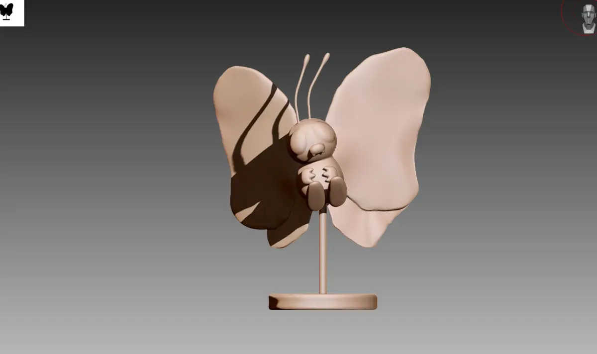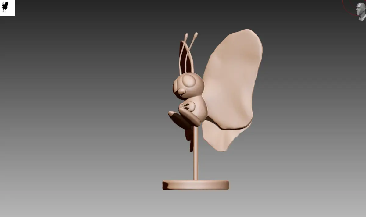 Butterfree is a lepidopteran insect Pokémon which resembles a vaguely anthropomorphic butterfly with a purple body. Unlike true insects, it only has two body segments and four light blue legs. The upper pair of its legs resemble small, three-fingered hands, while the lower pair resembles long, digit-less feet. Butterfree has two black antennae, a light blue snout with two fangs underneath, and large, red compound eyes. Its two pairs of wings are white with black venation. Two oval scales on a female Butterfree's lower wings are black, but they are white on a male.