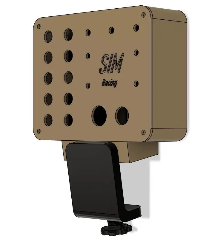 3D model of ButtonBox for sim racing. Size of top plate is 140x180mm. Top plate is mounted by 4 screws as on photo. There is a hole on back of the button box for usb cable.