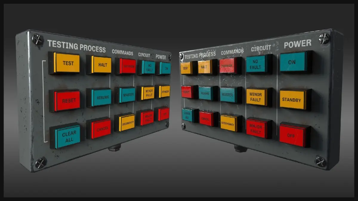 A control panel that's perfect for believable projects involving worn or used industrial machinery.