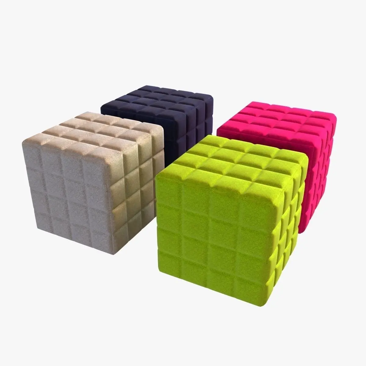 This is high poly pouf.Rendered in vray.Stack not collapsed.Textures included.Model tested checkmate light program.3ds, fbx, obj files exported without meshsmooth modifier.