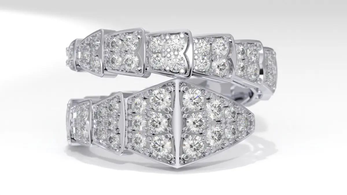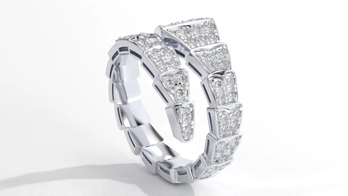 BVLGARI diamond snake ring.3D file is intended for jewelry production. The size of the ring, its weight, the number and dimensions of diamonds are indicated in the image in the gallery of this product.The STL file is completely ready for 3D printing and your production.
