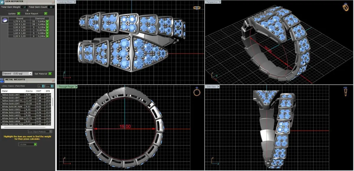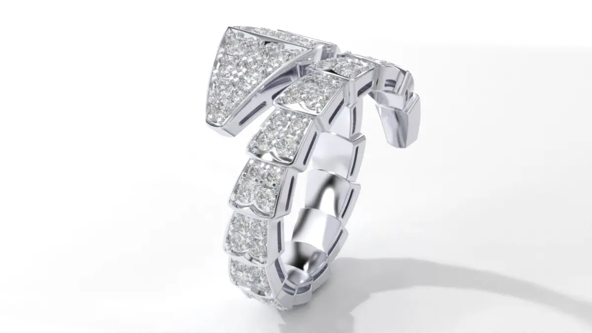 BVLGARI diamond snake ring.3D file is intended for jewelry production. The size of the ring, its weight, the number and dimensions of diamonds are indicated in the image in the gallery of this product.The STL file is completely ready for 3D printing and your production.