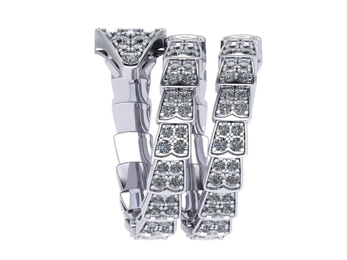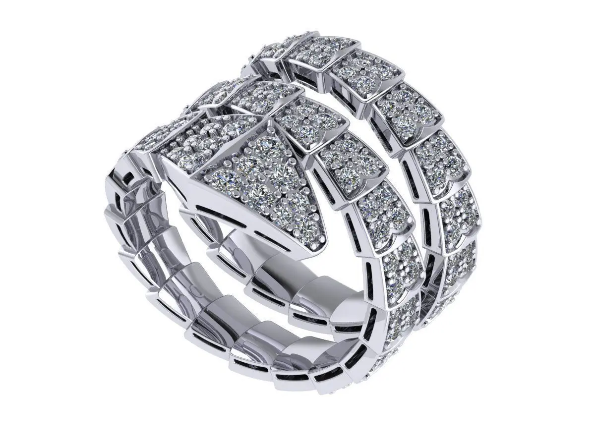 BVLGARI Serpentine Diamond Ring The ring has a torn stem to fit US size 10 fingers. The weight is shown in the screenshot. The size of the ring is shown in the screenshot. Gems are shown in the screenshot. The ring is ready for 3D printing. checked by time.