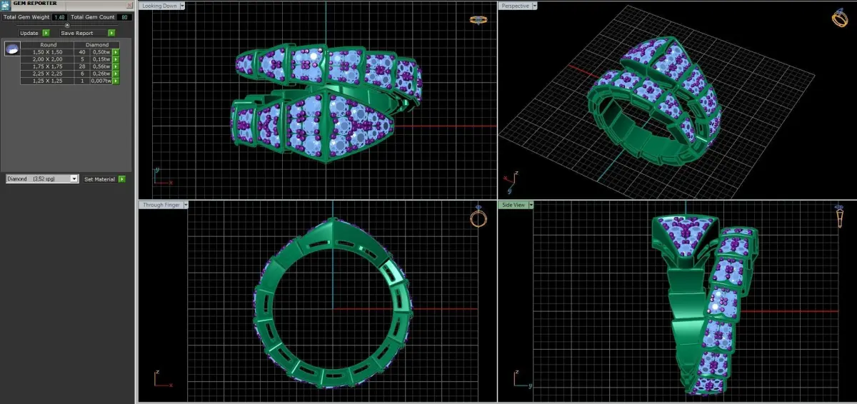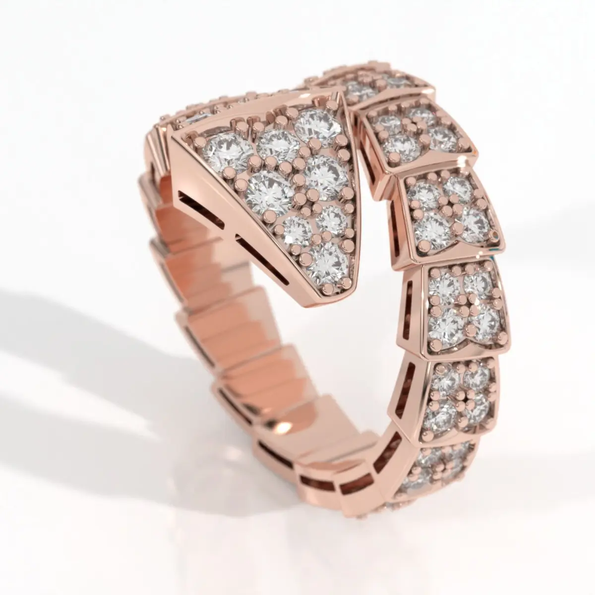 BVLGARI snake diamonds ringThe ring has a torn shank to accommodate any finger size.The weight is shown in the screenshotThe size of the ring is shown in the screenshotThe gems are indicated in the screenshot.The ring is completely ready for 3D printing. time-tested.