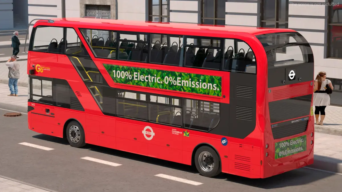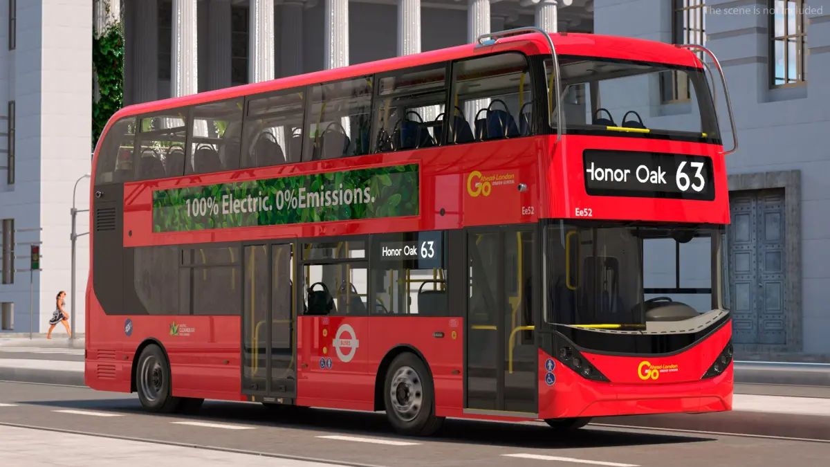 BYD Routemaster Double Decker Rigged is a model of a modern, eco-friendly public transport vehicle, inspired by the iconic double-decker buses and designed for efficient urban commuting.
