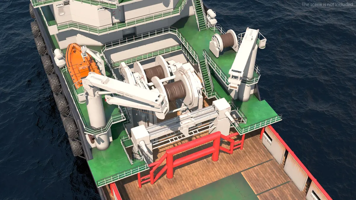 Bylgia Deep-Sea Anchor Handling Tug Rigged for Cinema 4D is a three-dimensional model of Bylgia vessel tugboat that is a robust marine vessel, designed primarily for towing or pushing large ships and aiding in several maritime operations.