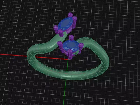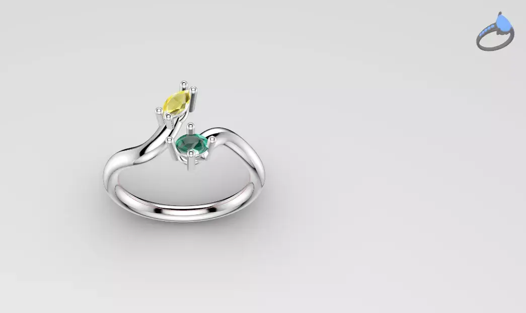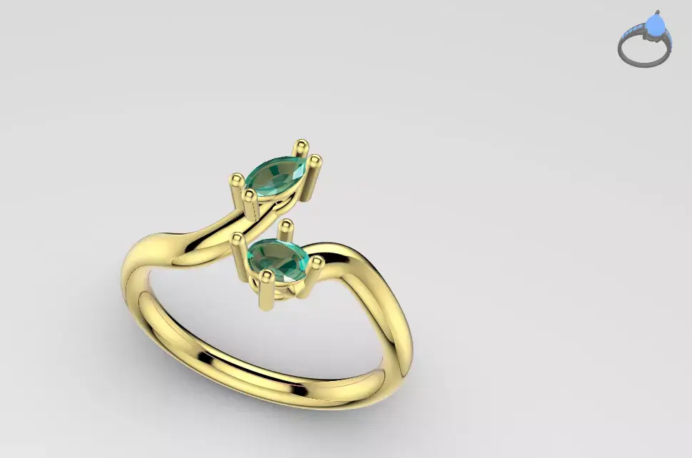Bypass ring design featuring two elegant gemstones set in a modern open-style band. The ring is created with a smooth, minimal form that wraps around the finger with a soft crossing effect, allowing both stones to sit at opposite ends in a balanced and refined composition. The design highlights simplicity and elegance, making it suitable for fine jewelry production, rendering, or 3D printing.