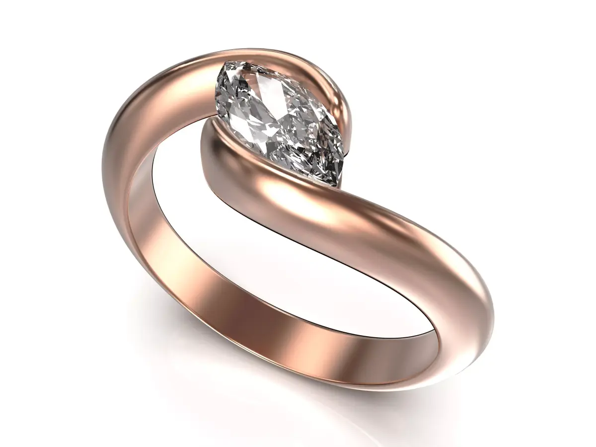 Bypass Solitaire Marquise Ring 3D Print Model 3D print model