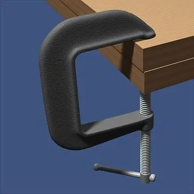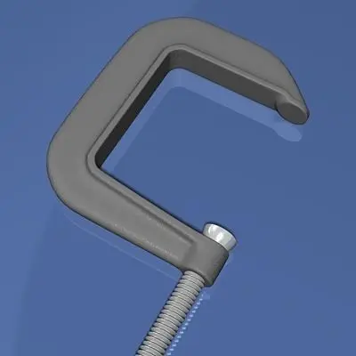 C-clamp modeled in Carrara 4.0 and provided in .CAR, .3DS, and .OBJ formats. C frame, screw, and handle are modeled as separate objects for easy animation and manipulation. Realistic threads are modeled into the screw.