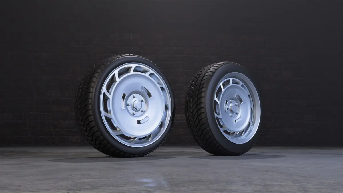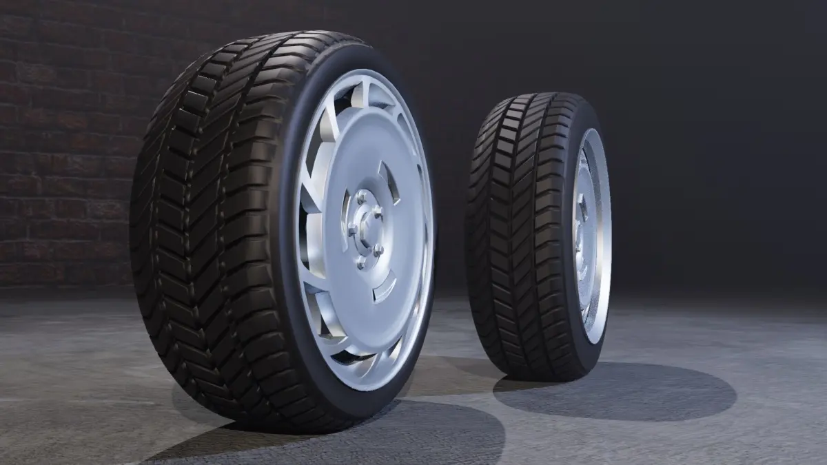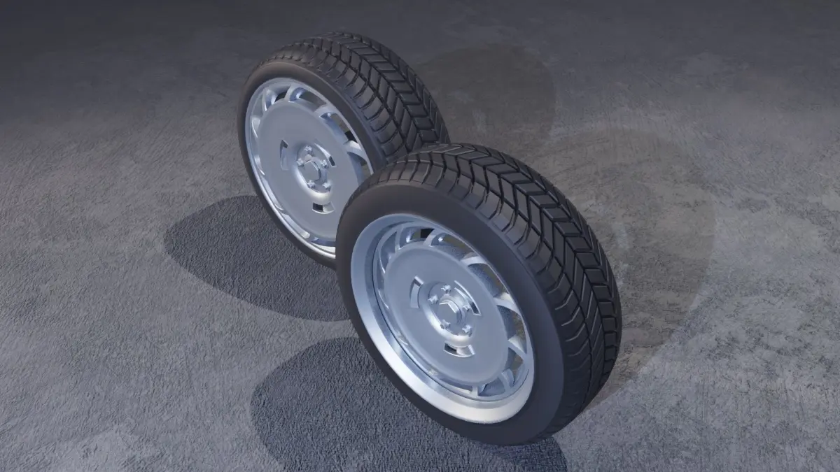 - Model has 1 predescribed material for a rim and 1 predescribed material for a tire