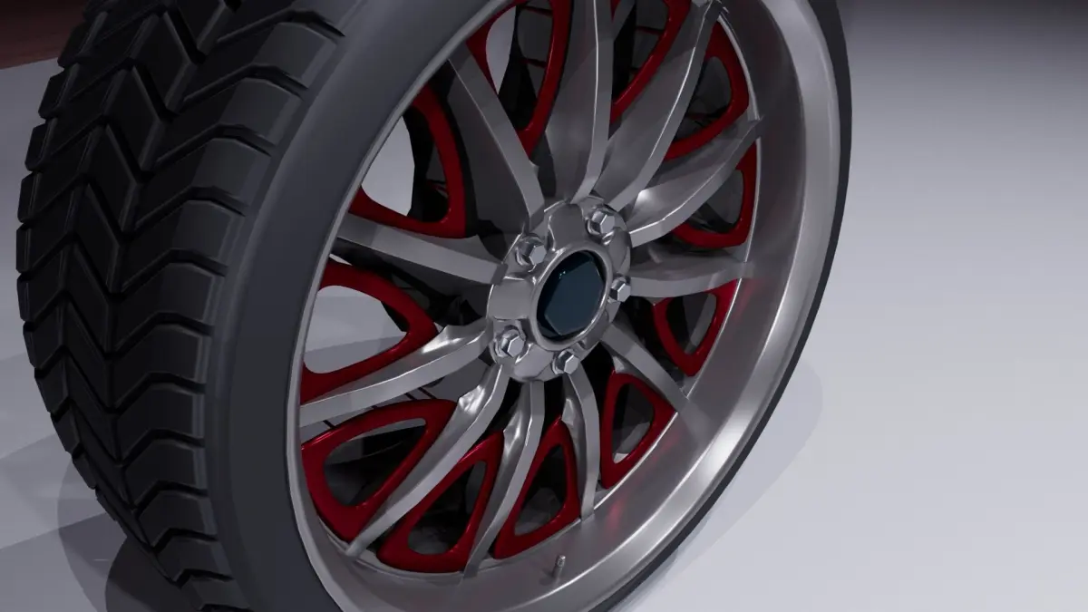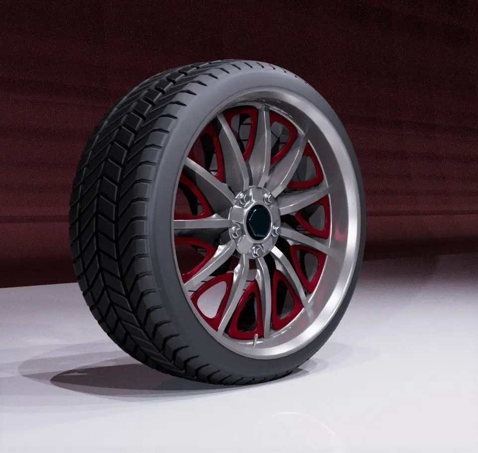 Tire with tread (5460 verts, 5400 poly) with 1 predescribed materialOrigin is set to wheel centerCenter hub is not based on any measurements