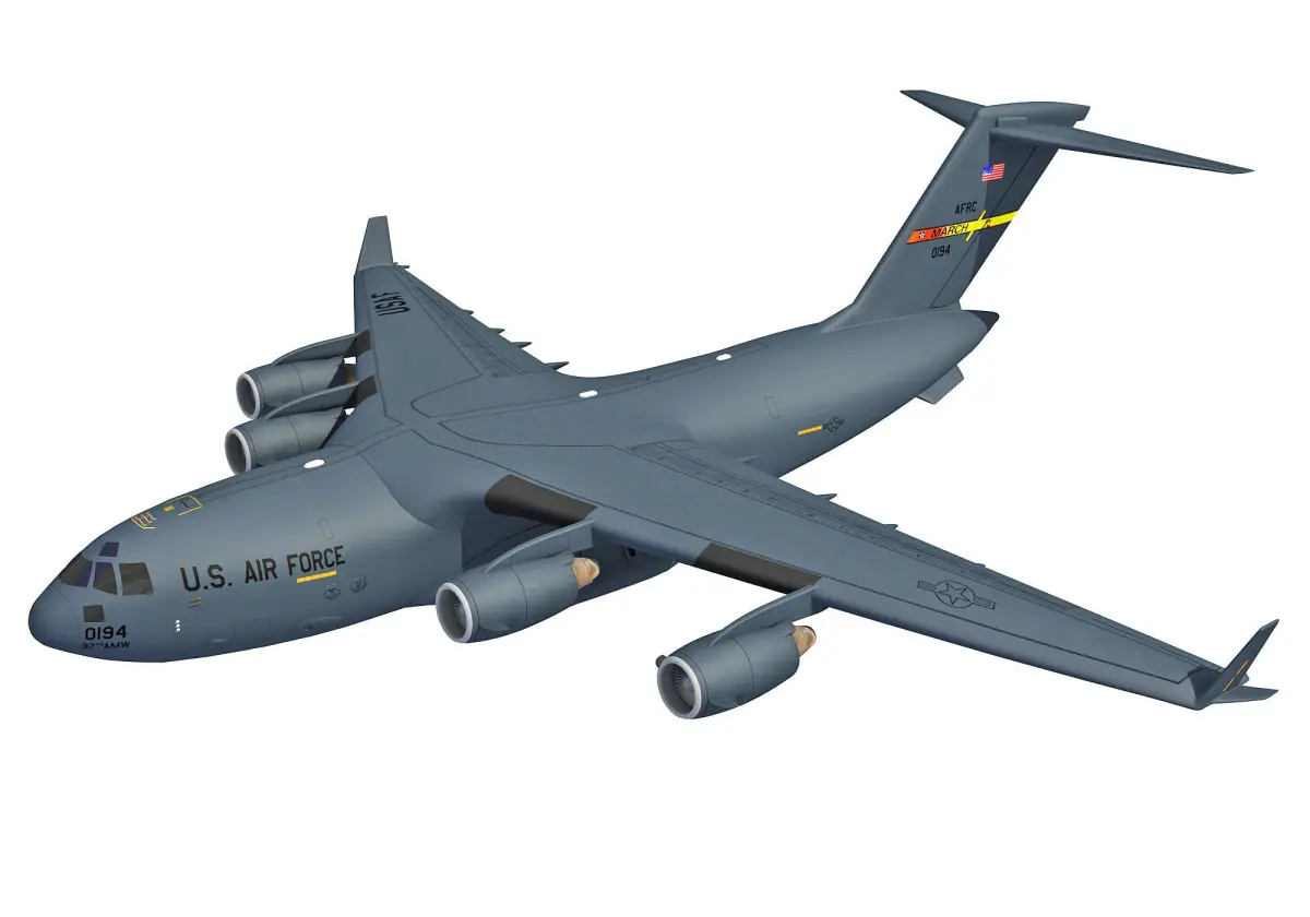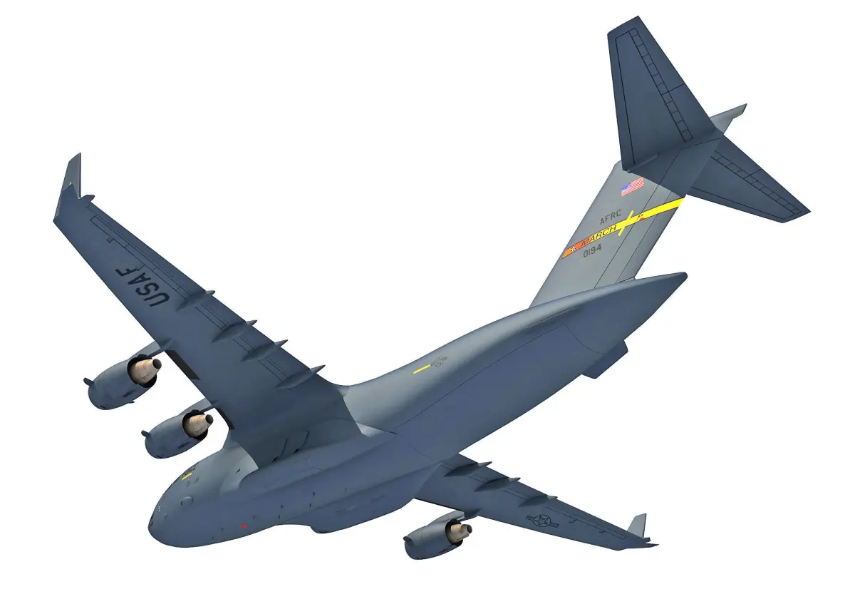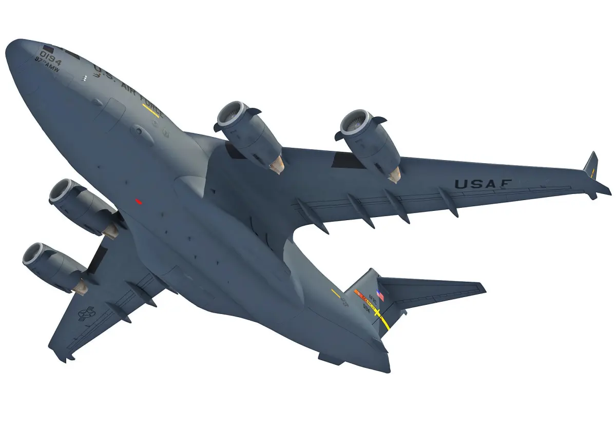 High detailed 3d model of C17 Globemaster III military transport aircraft.