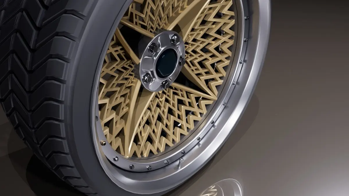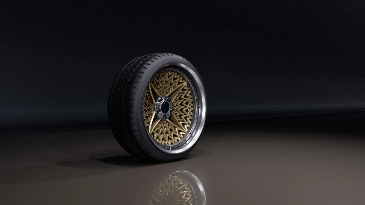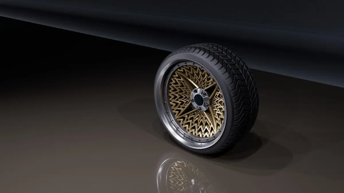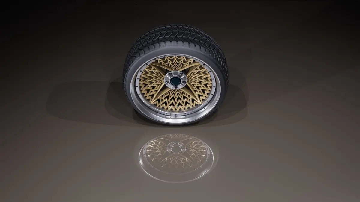 Concept 4 spoke wheels with basket alike ornaments. Inspired by JDM and Group C BBS turbofan rim ornaments.
