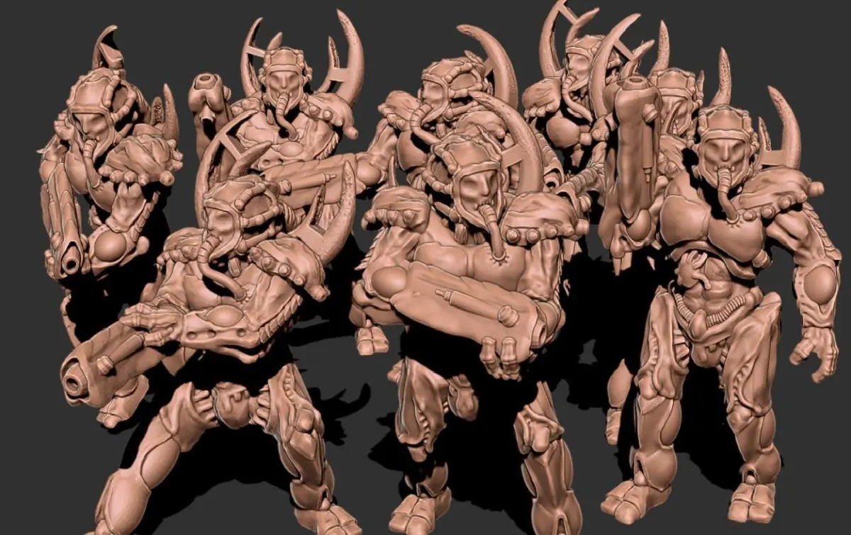 This is a model kit for creating a squad of nine Calbal Screamers. Models are equiped with Fleshcraft armor and bio fission cannons.
