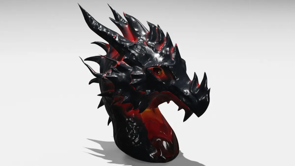 cabeza de dragon de low-poly y para impresion 3d. echa en blender con materiales hechos por mi en 3 formatos obj, fbx, slt.