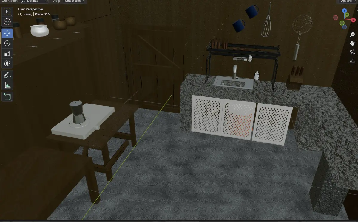 From a recalled memory, I don't quite remember Everything mentioned here is in the file.*Includes*Wicker Basket+Light Bulb+Percolator+Logs+Sugar Plastic Container+Twin size bed+Memory Foam pillow+Knife+Spoons+Forks+Seasonings+Portable Burner+Whisk+ 2 Mugs+ Wooden Nail+Strainer+Wooden CupsWooden Tables+ Water Cooler+Brick+Steal Sheets+Window curtains+Pot+Sink+