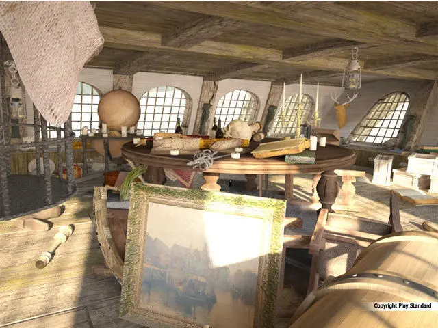 Model cabin captain period 16 - 18 century.The scene is the captain's cabin of an abandoned pirate ship.In the captain's cabin contains a lot of antiques pirate period.Parts and interior cabin captain correspond 16th - 18th centuries.The scene is perfect for game developers in the genre of hidden object and adventure.