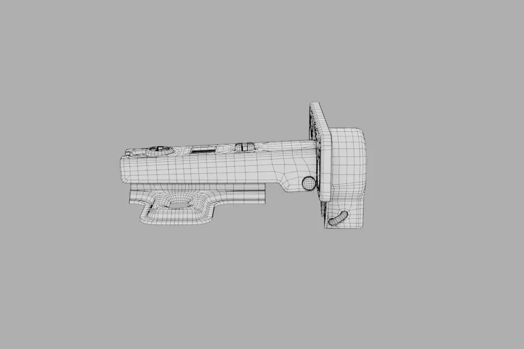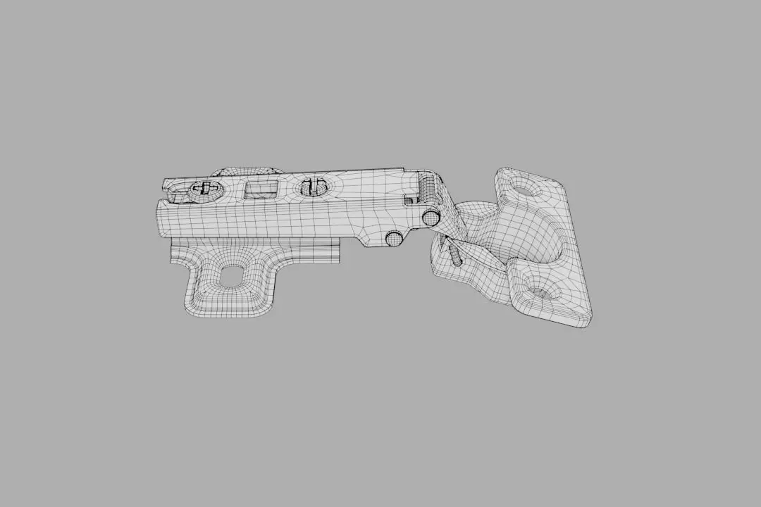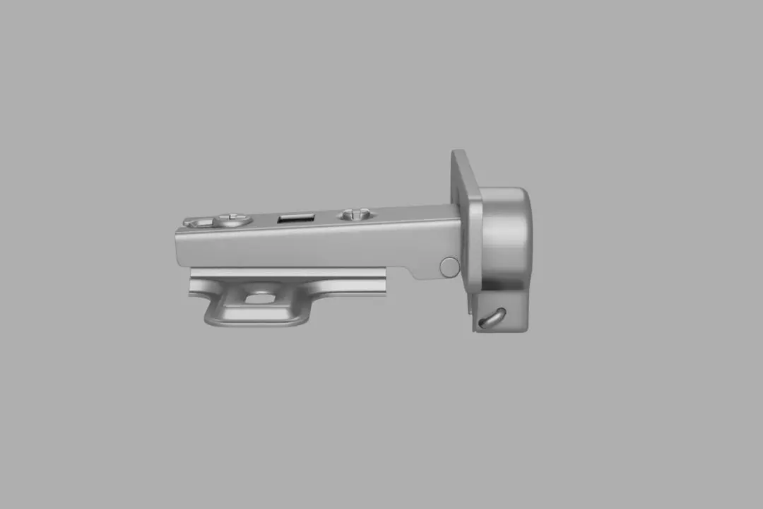 Stainless 105 degrees cabinet hinge for wood furnitures. Include model open and closed. Scalable and subdivisible