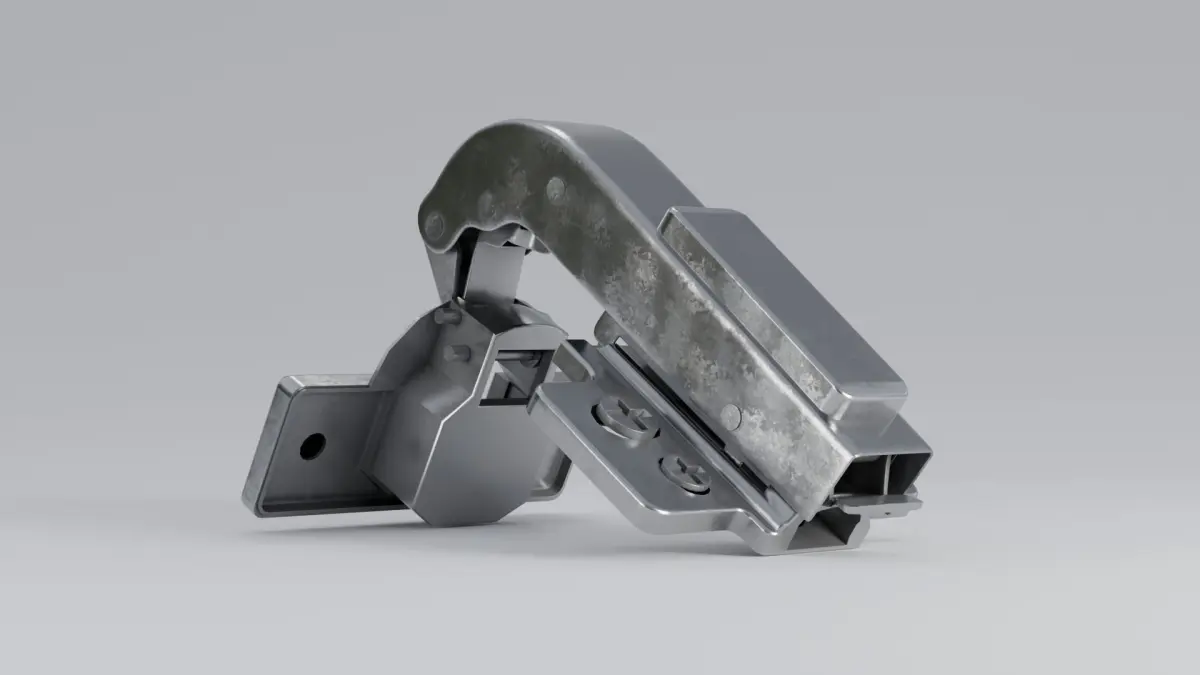 2 types Cabinet hinge rigged and animated (fbx with baked animation) made in blender All textures and materials are included and assigned Previews rendered in Blender with cycles