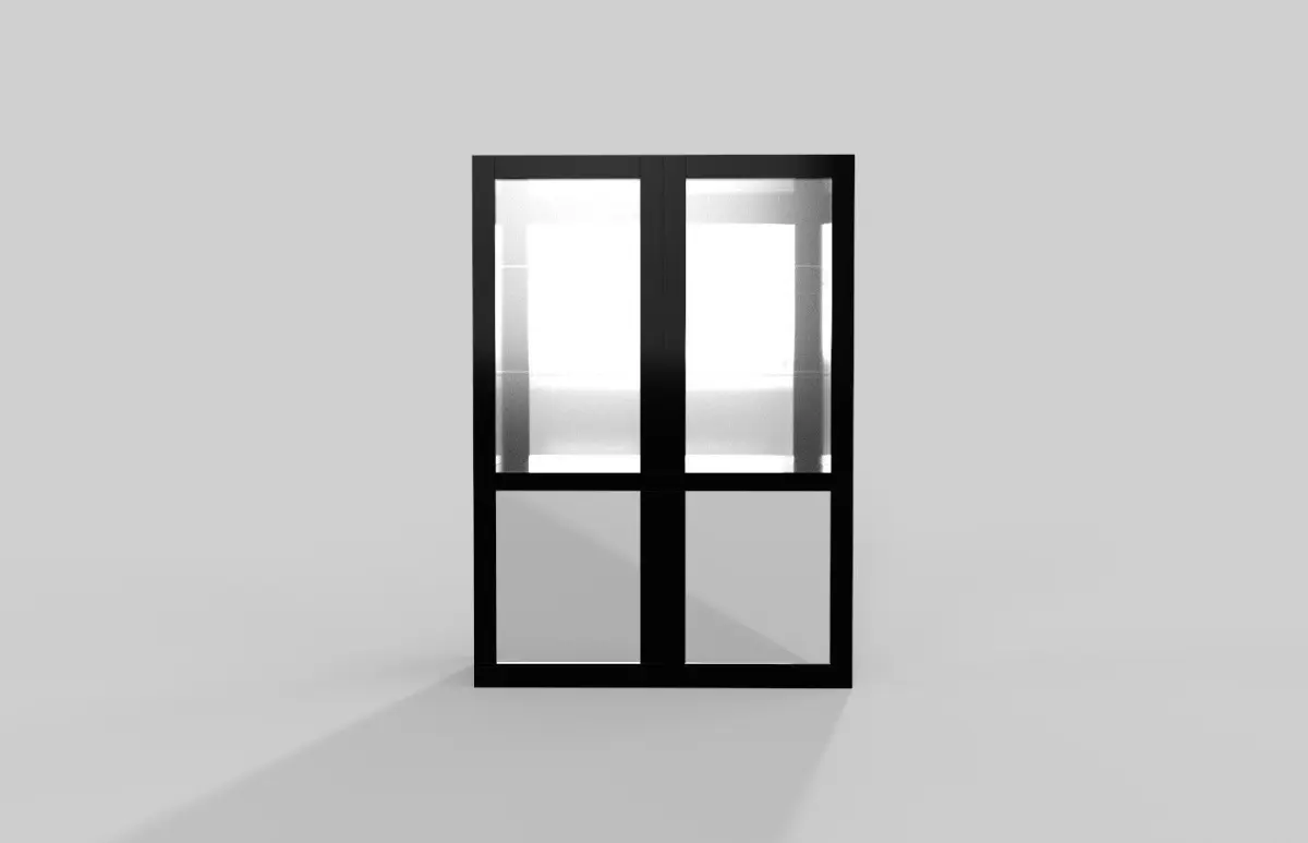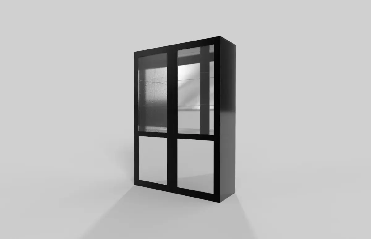 A sleek and contemporary look with this high gloss display cabinet. It is made from engineered wood with a glossy white or black finish. The cabinet features glass shelves and a mirrored back to reflect light and enhance the display. The clean lines and shiny surface add a modern touch.