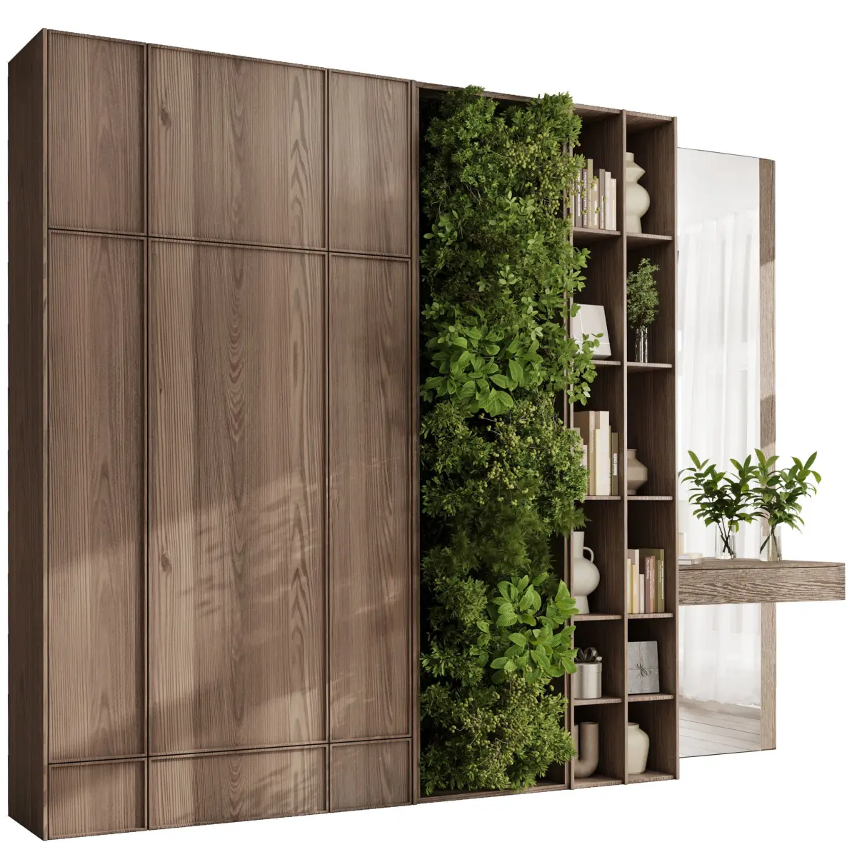Cabinets wooden Shelves Decorative With Plants and Book 04