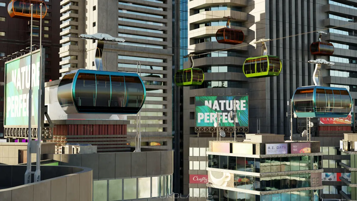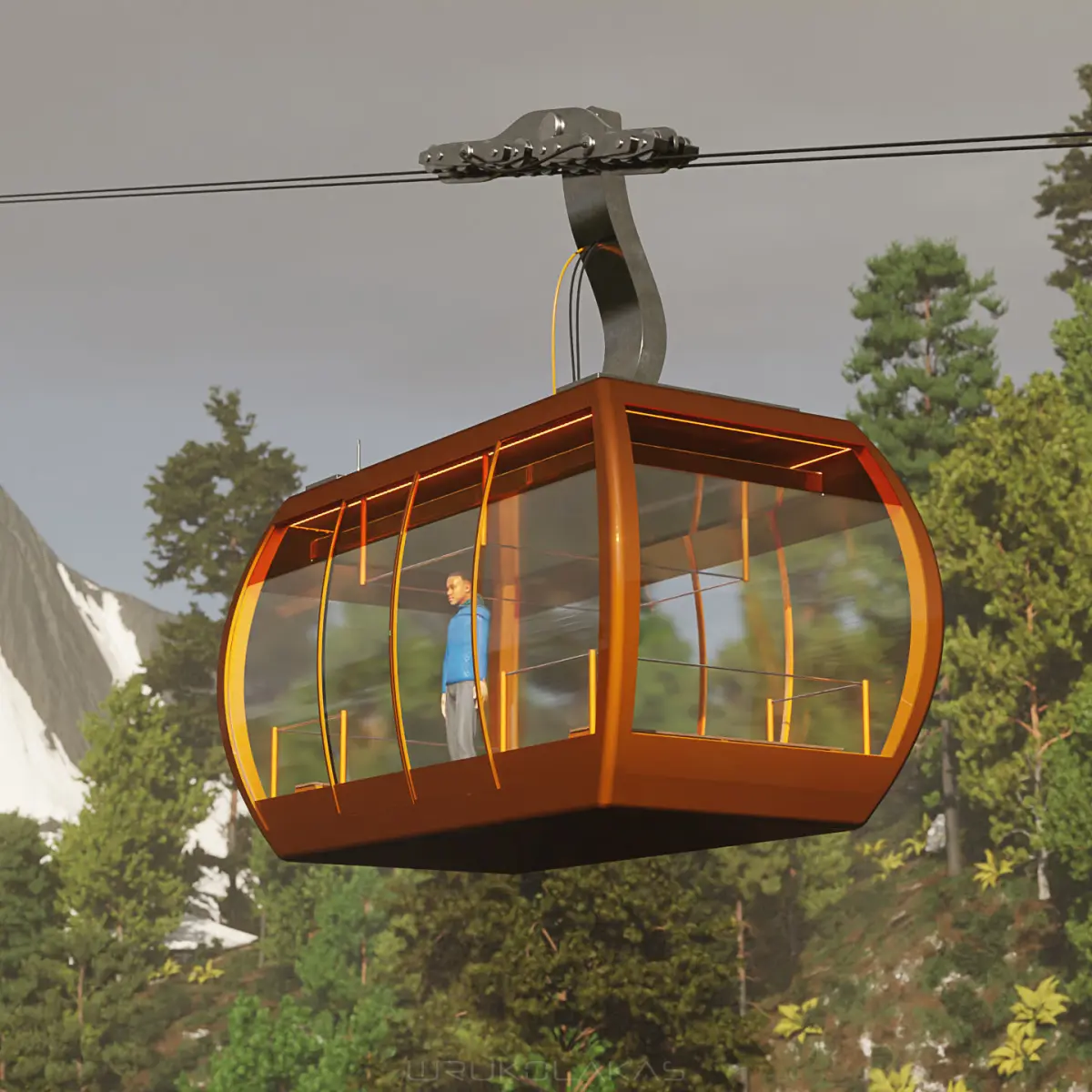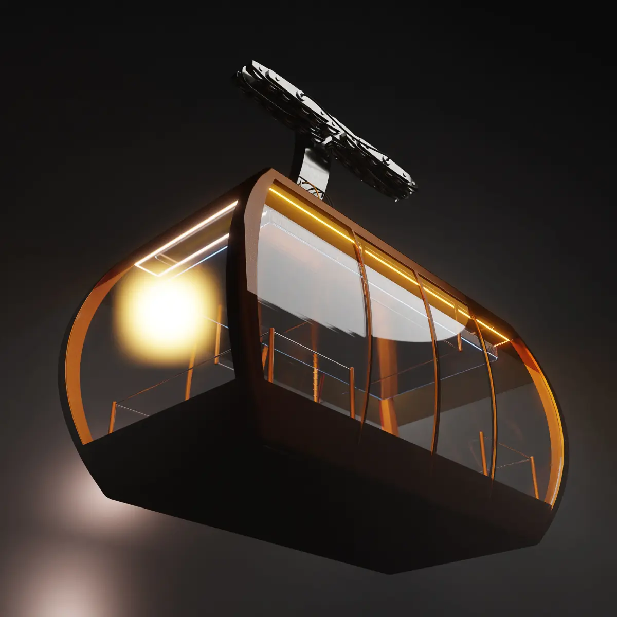 A detailed model of a cable car.