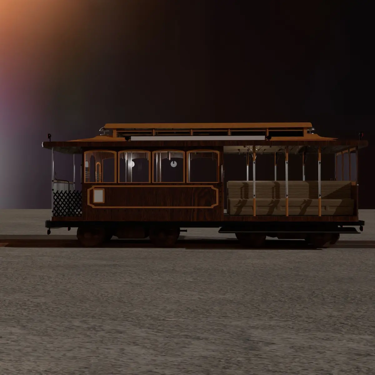 Cable Car modeled in Blender. High Poly model with 2,500,000 triangles and high poly textures. Render in Raytracing.