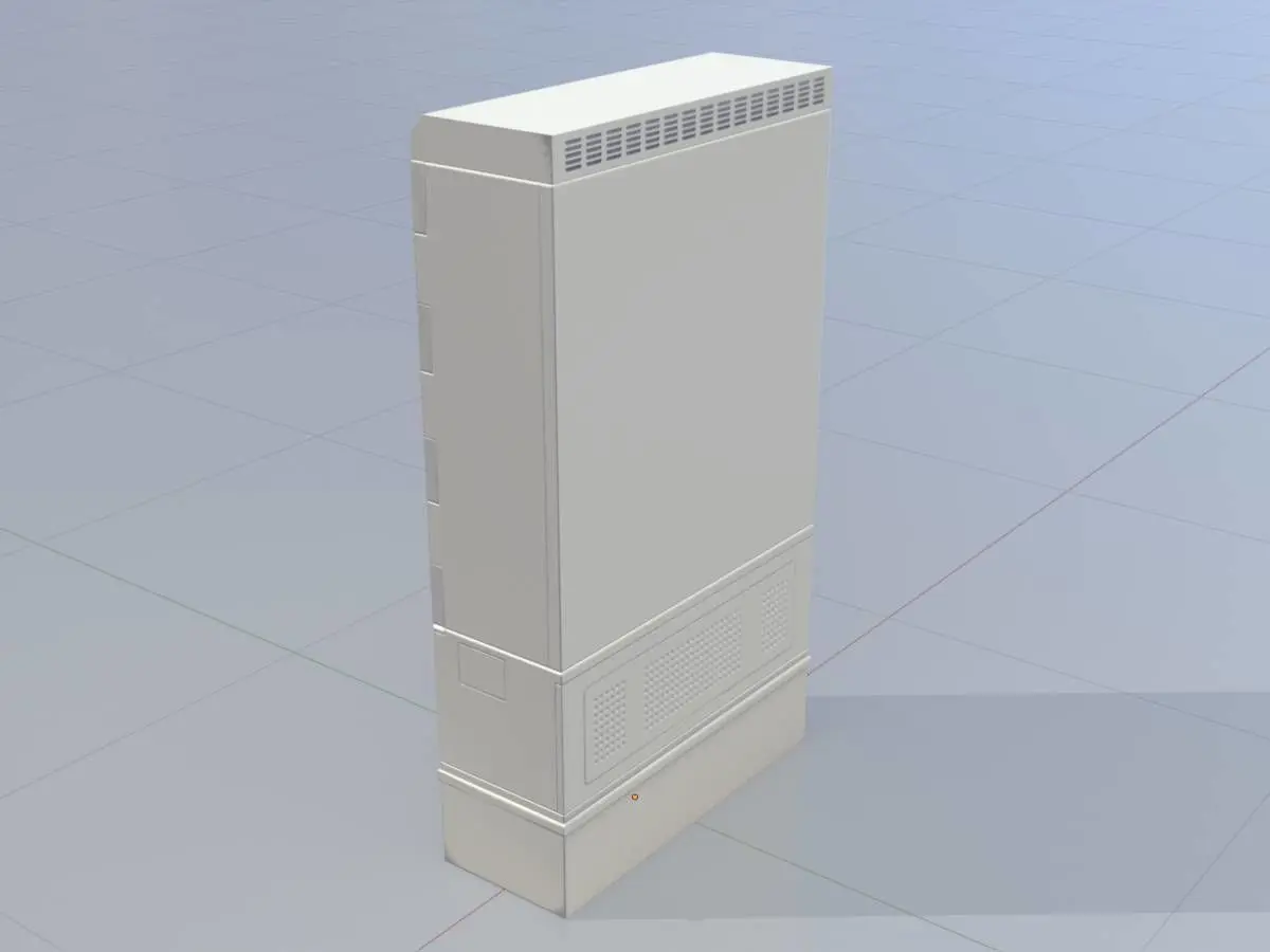 This is a 3D model of a two-door cable distribution cabinet with perforated base plate and rotating handle. The 3D model is based on reality and has a height of 1.4 metres. It has been created and optimised for real-time applications such as 3D visualisations or video games. The insertion point of the object is logically chosen so that you can easily place the model in your 3D scenes. The textures have a resolution of 8192 x 8192 px and correspond to the PBR workflow (base colour, roughness, metallic, normal).