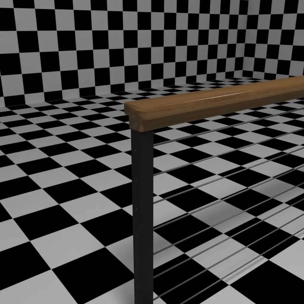 This is a typical cable railing style used for residential or commercial projects. This style is composed of a harwood top rail comprised of two pieces, 2x2 black metal posts, and horizontal steel cables. The top rail is 36above floor level. The posts are spaced a maximum of 8' on center. The cables are spaced 4 on center. This railing was created in AutoCad Architecture 2017 as a railing style. As such, you have complete control over many customizable settings with the style editor. The railing object was then imported into 3ds Max 2017 and the previews were rendered using V-Ray Next 2.1. In AutoCad, the rail style does not have any materials assigned. In 3ds Max, the materials and textures that you see in the previews are included in the .zip file. We use these railings for our 3D models of residential and commercial projects built in AutoCad and imported into 3ds Max.