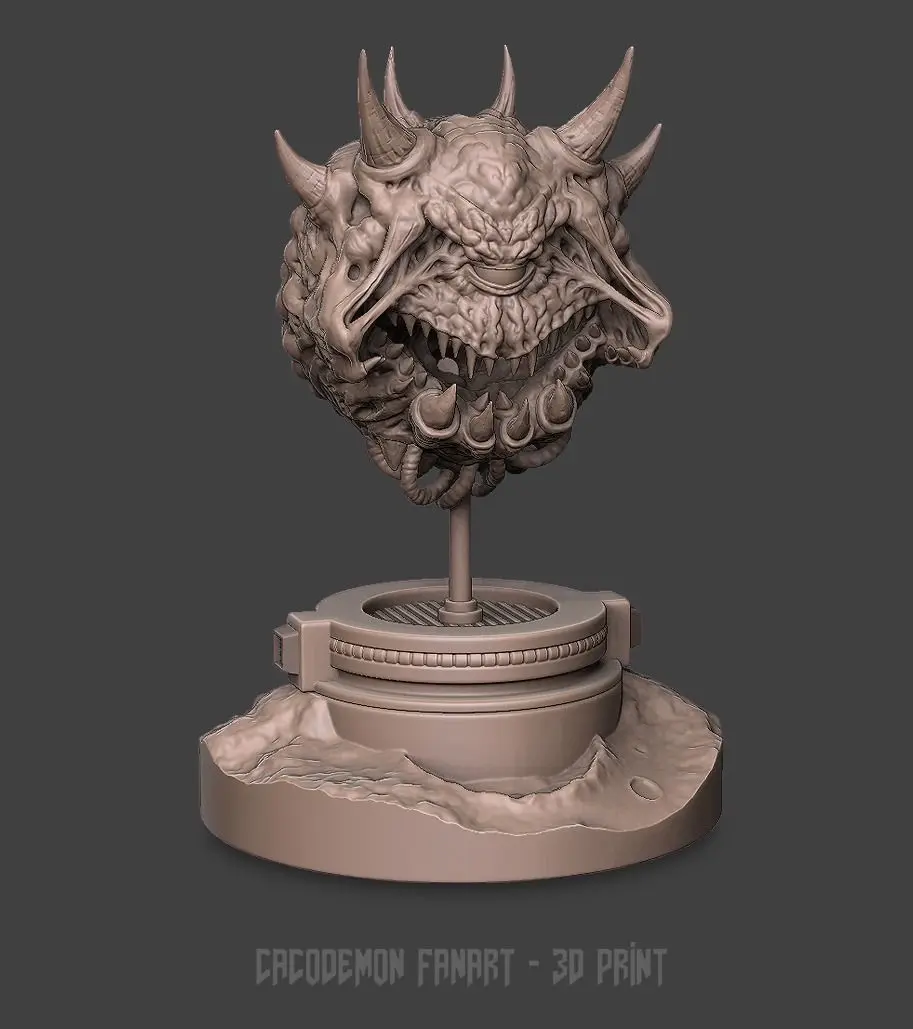 Modern interpretation based on classic Doom's Cacodemon sprite.This model is prepared for 3D Printing. It's split into 12 pieces and has been scaled to a total height of 17,5 cm / 7 inch. But can be scaled up to your own preference.All parts are in OBJ format. Included are the standard preparation for FFF Printers and also extra optimization for Resin printers (Hollow mesh + drain holes).
