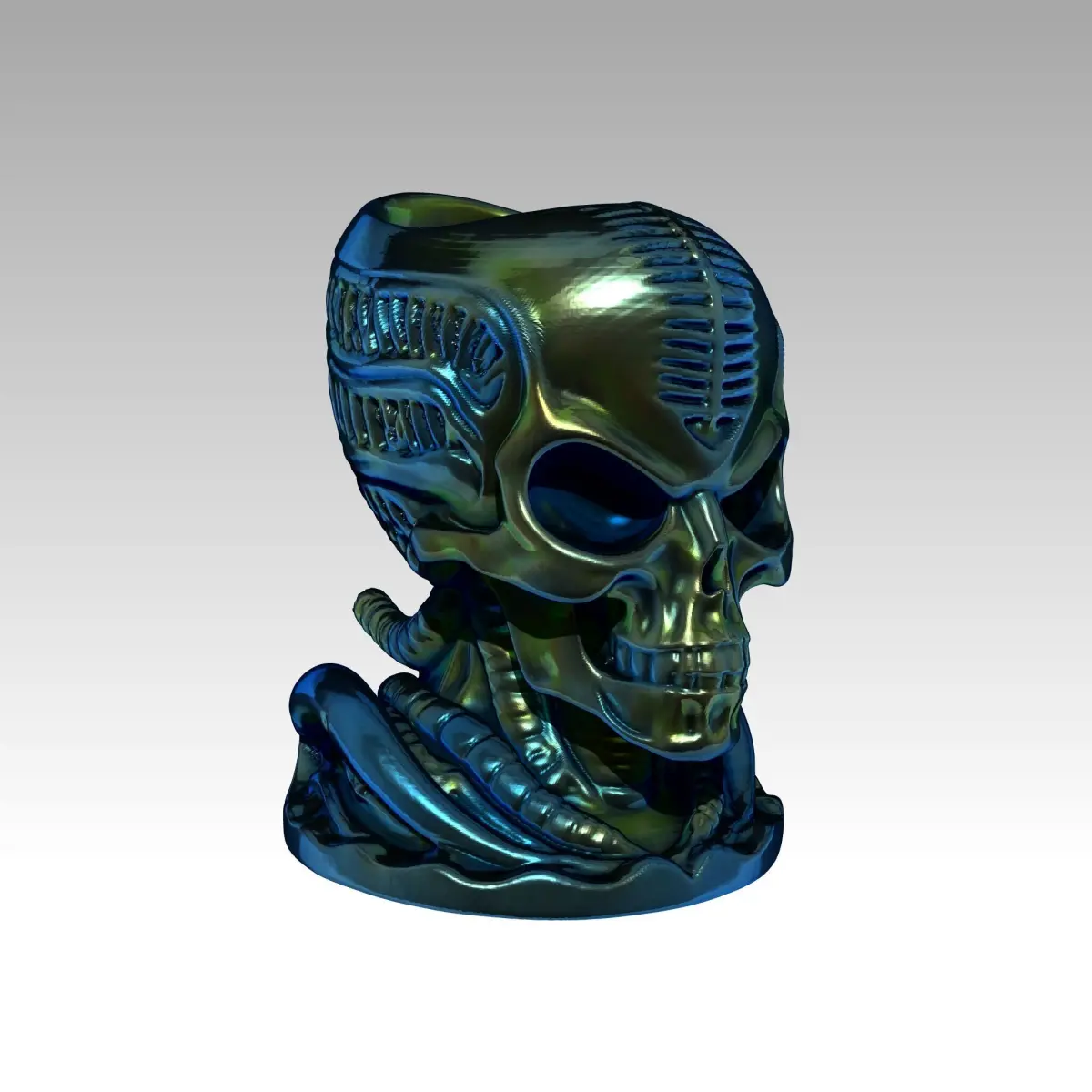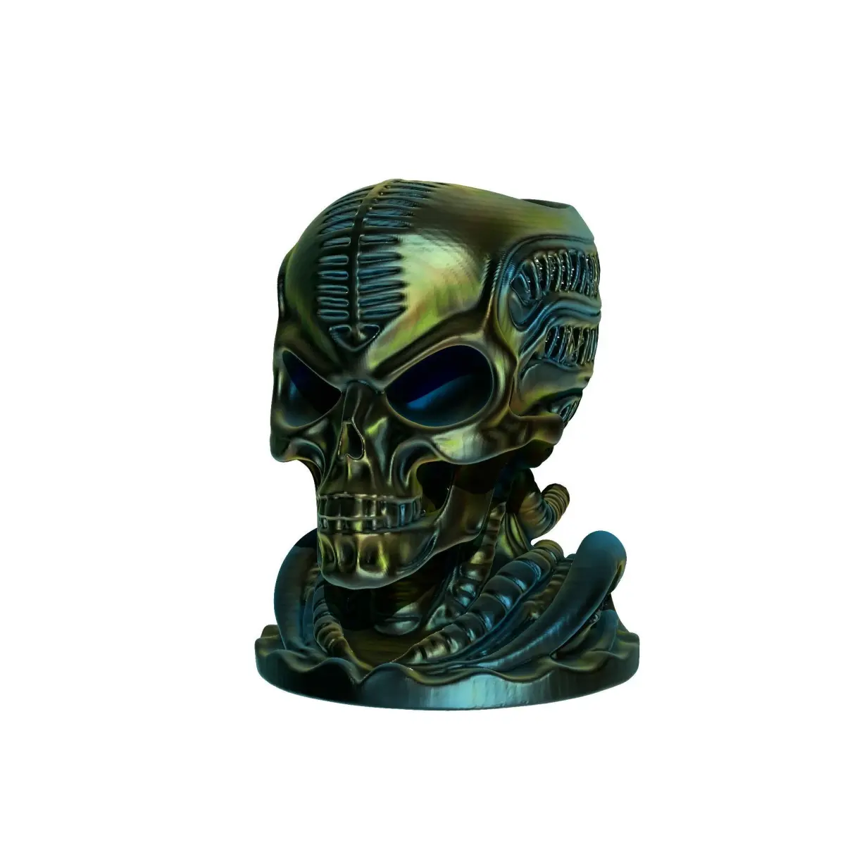 Design ConceptThe Cactus Planter in the form of an Alien Skull merges nature with sci-fi elements, creating a unique piece of art inspired by extraterrestrial aesthetics. Its detailed features highlight the concept of otherworldly beauty combined with functionality.
