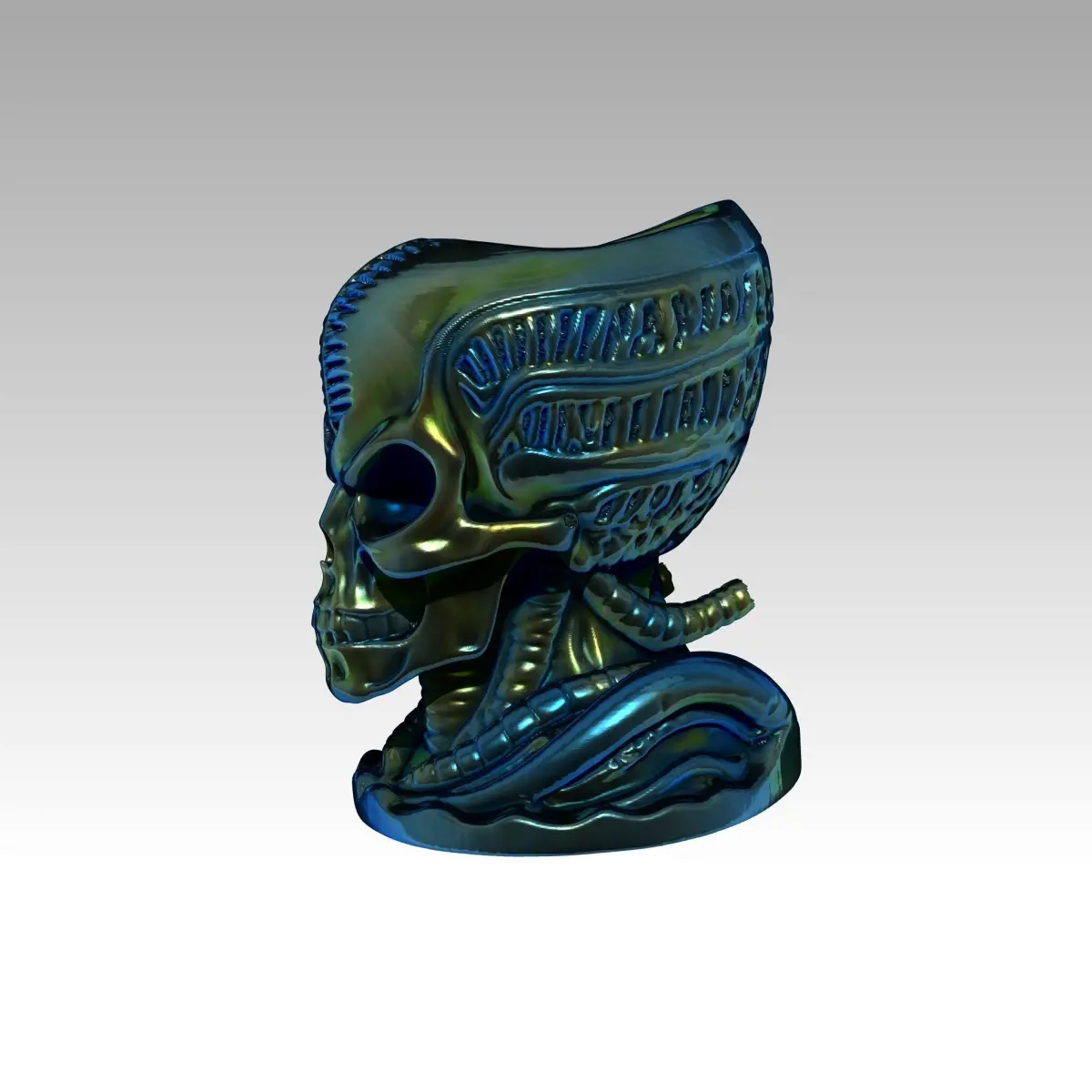 Printing SuggestionsUse a high-resolution 3D printer for detailed features. Consider using gray or metallic-colored filament to enhance the alien look. High infill percentage is recommended to ensure stability.